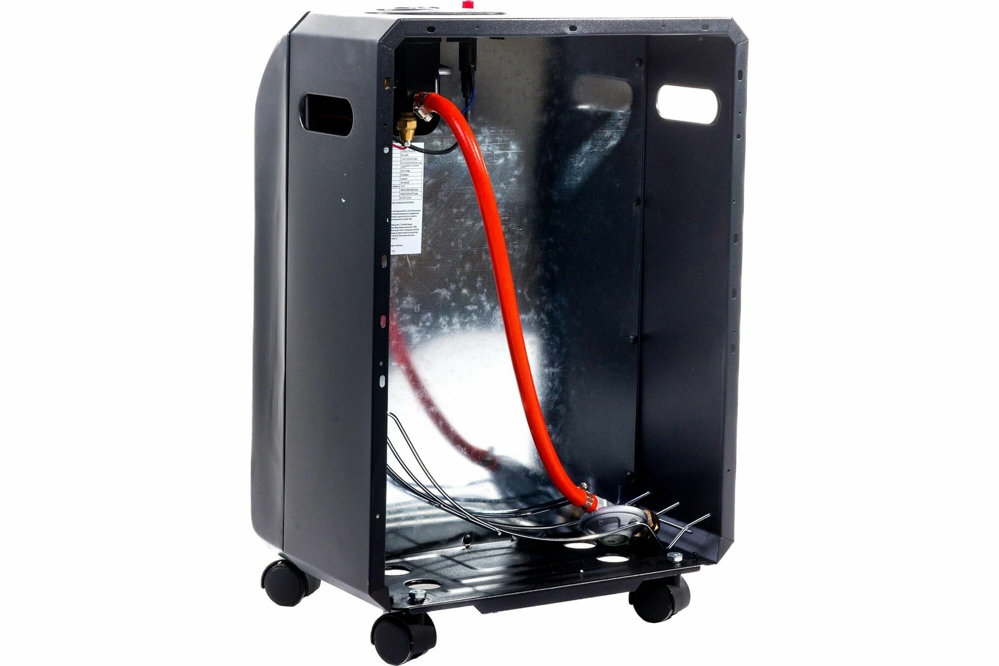 | Плюсы: | Простота в обращении. Невысокая цена. Газовый баллон 12,5л убирается внутрь изделия. Хорошо светит ИК-теплом. Не требует электричества. |