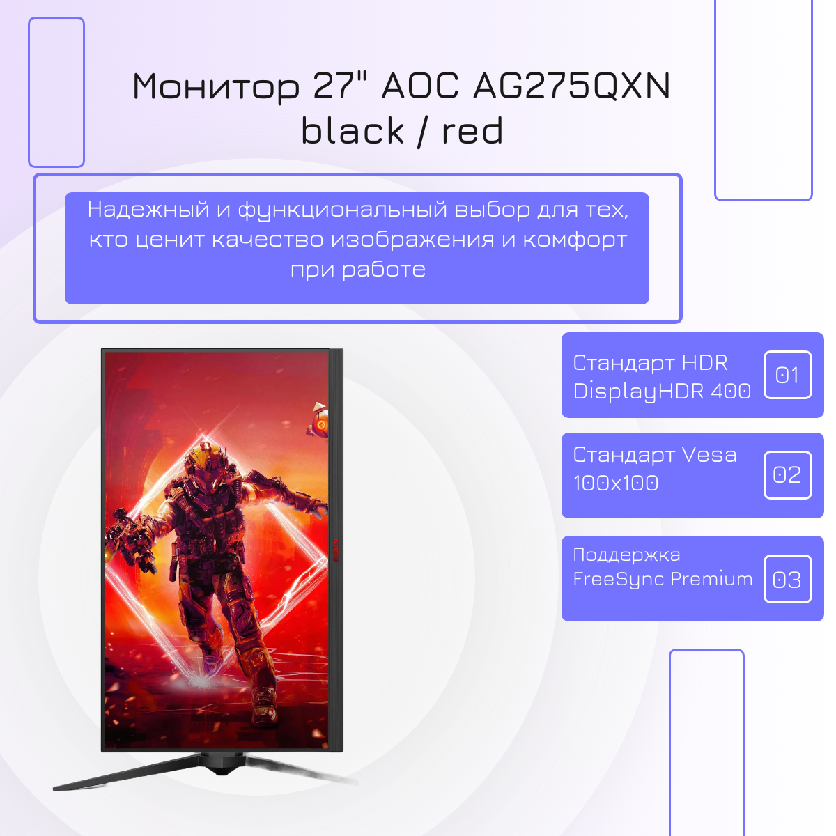 Монитор 27"AOC AGON AG275QXN 165Гц, 2560x1440, Freesync premium, HDR 400 черный/красный интересное:
