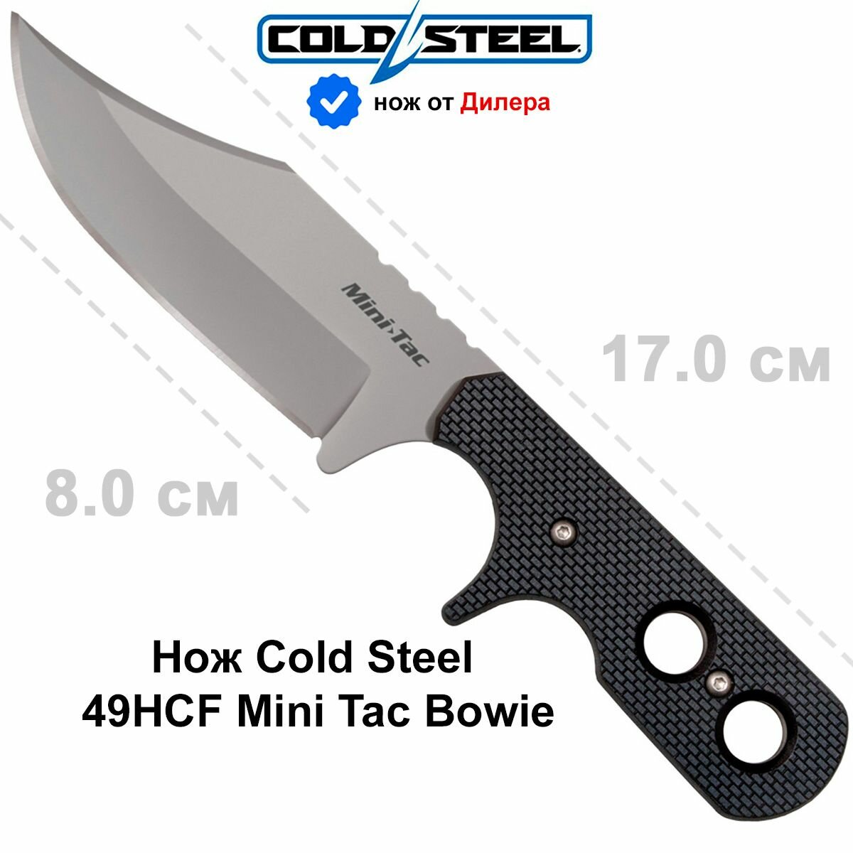 Нож Cold Steel 49HCF Mini Tac Bowie интересное: