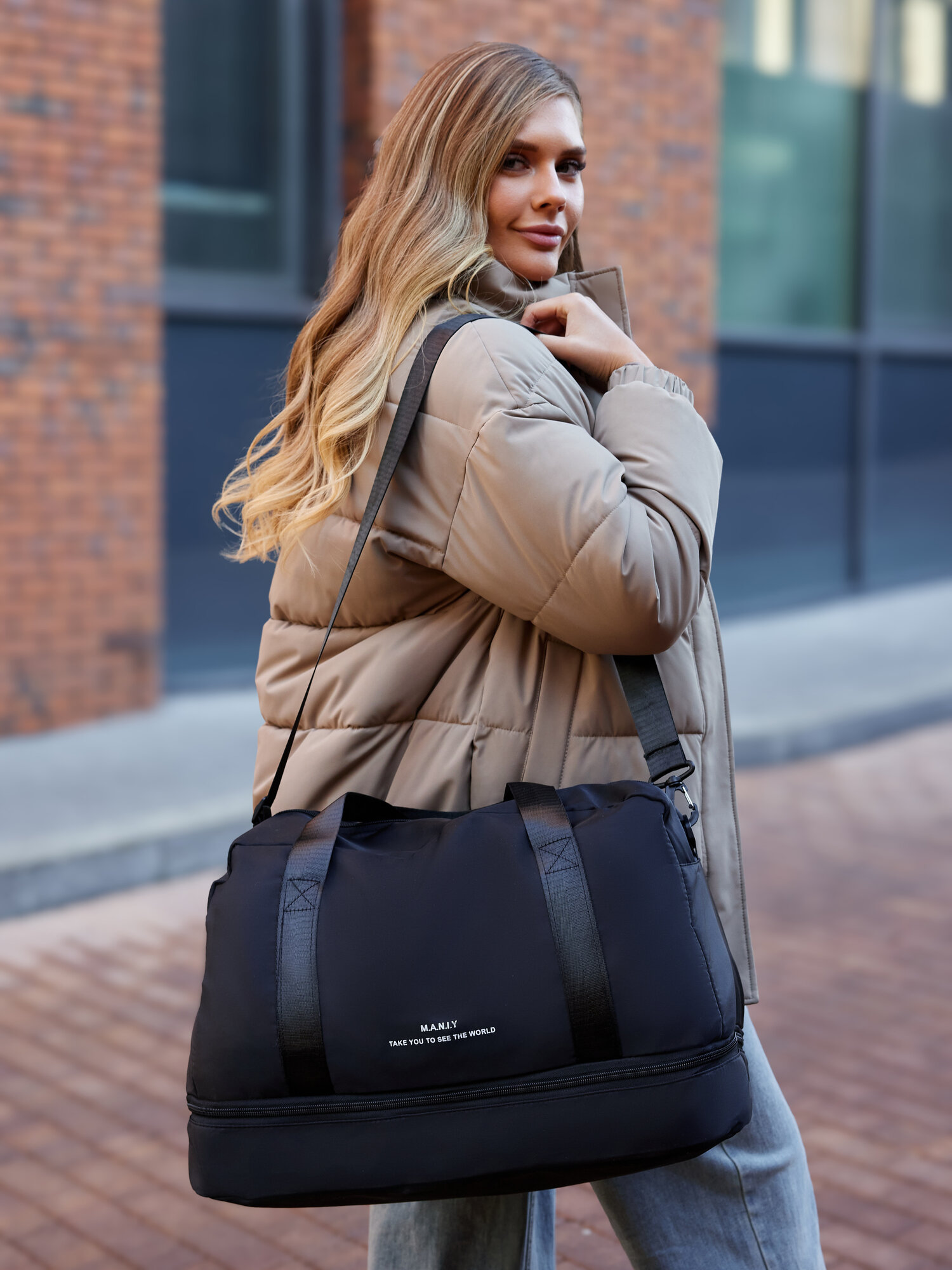 Сумка дорожная спортивная женская чёрная, мужская, ручная кладь в самолёт, для фитнеса и бассейна.