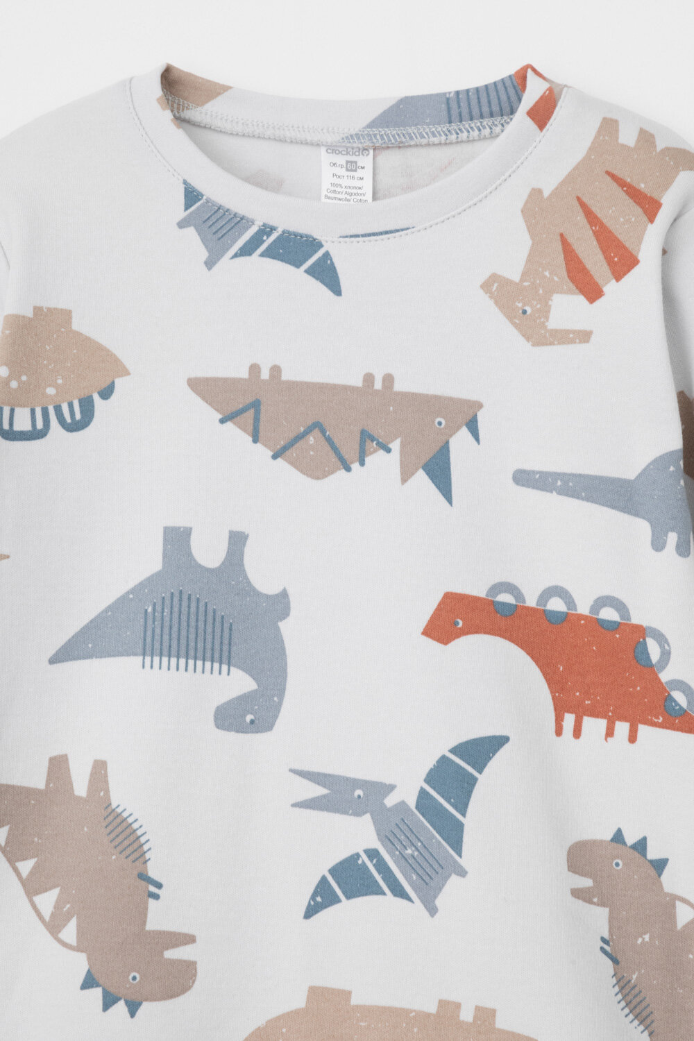 Купить Пижама Crockid К 1552/речной перламутр,динозавры р 52/86 для мальчика из натурального хлопка
