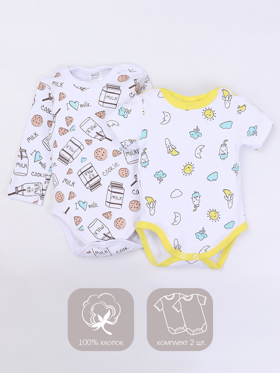 Купить 30444 Комплект боди (2 штуки) с коротким и длинным рукавом Котмаркот белый размер 80