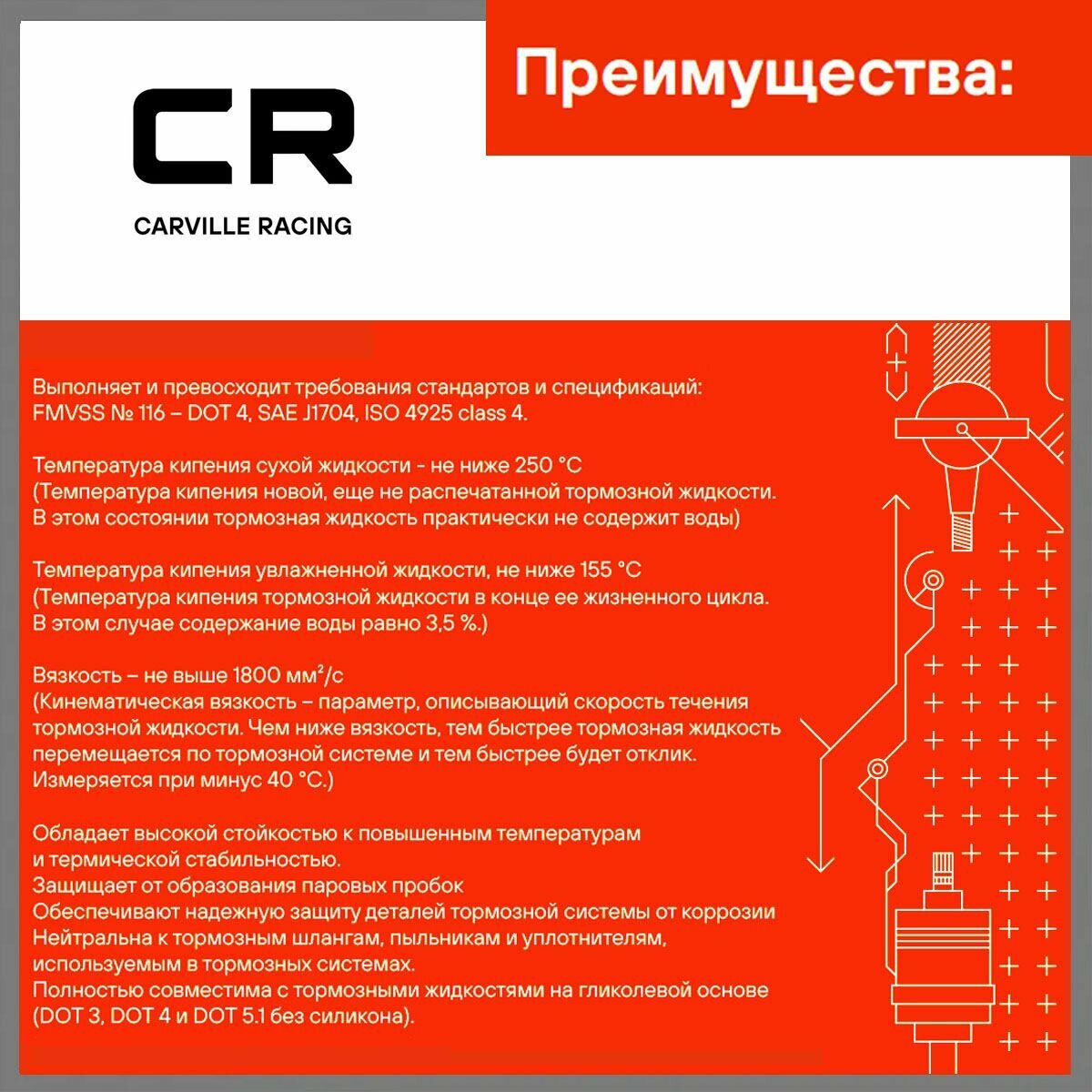 Жидкость тормозная CR DOT 4 t>250°C вязкость<1500 233мл 250гр Carville Racing L4250254 интересное: