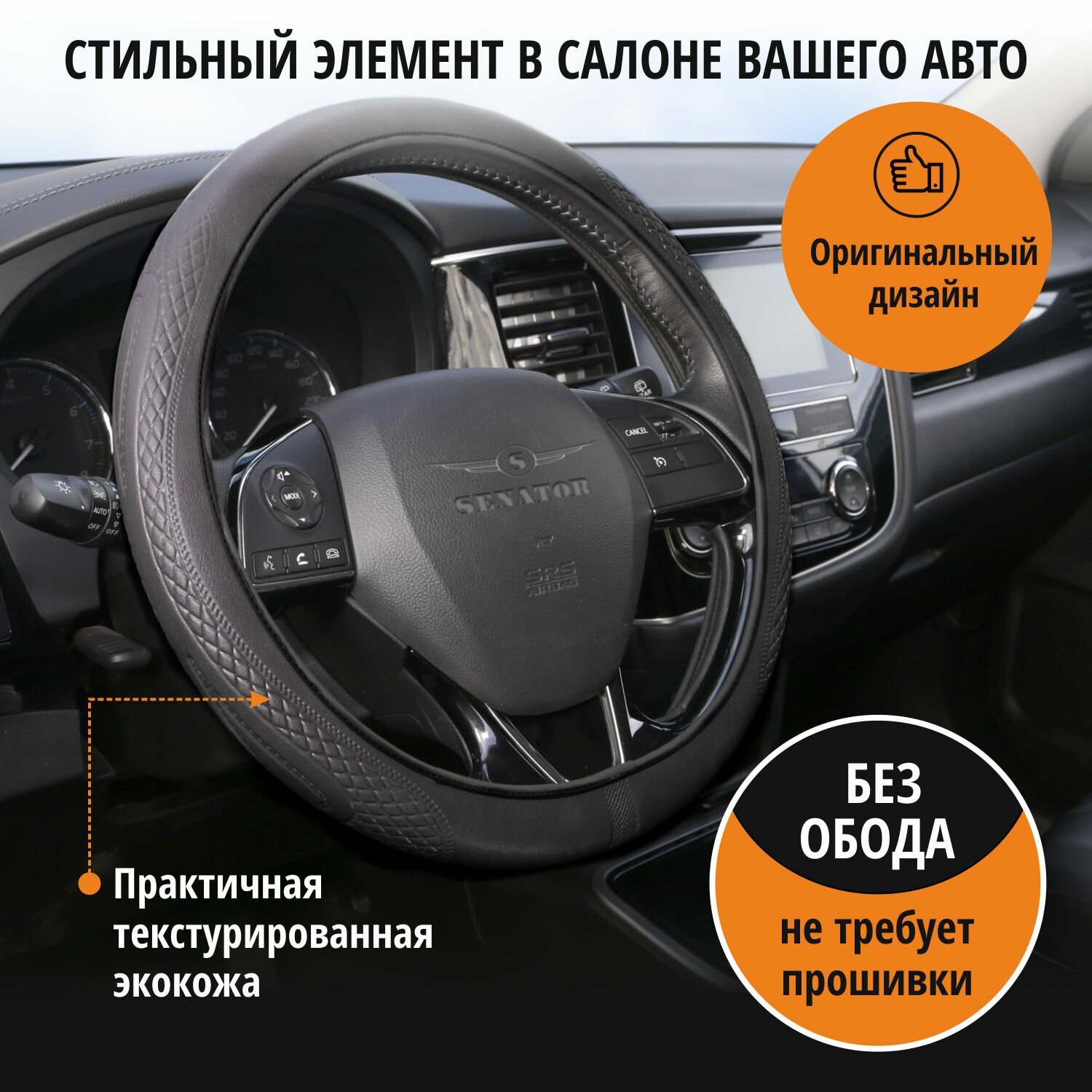 Оплетка на руль SENATOR Nevada чехол на руль автомобиля экокожа, цвет черный, 38 см