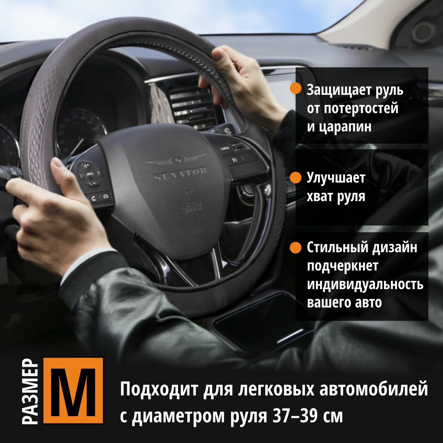 Оплетка на руль 37-39 см SENATOR Nevada "М" чехол на руль автомобиля интересное: