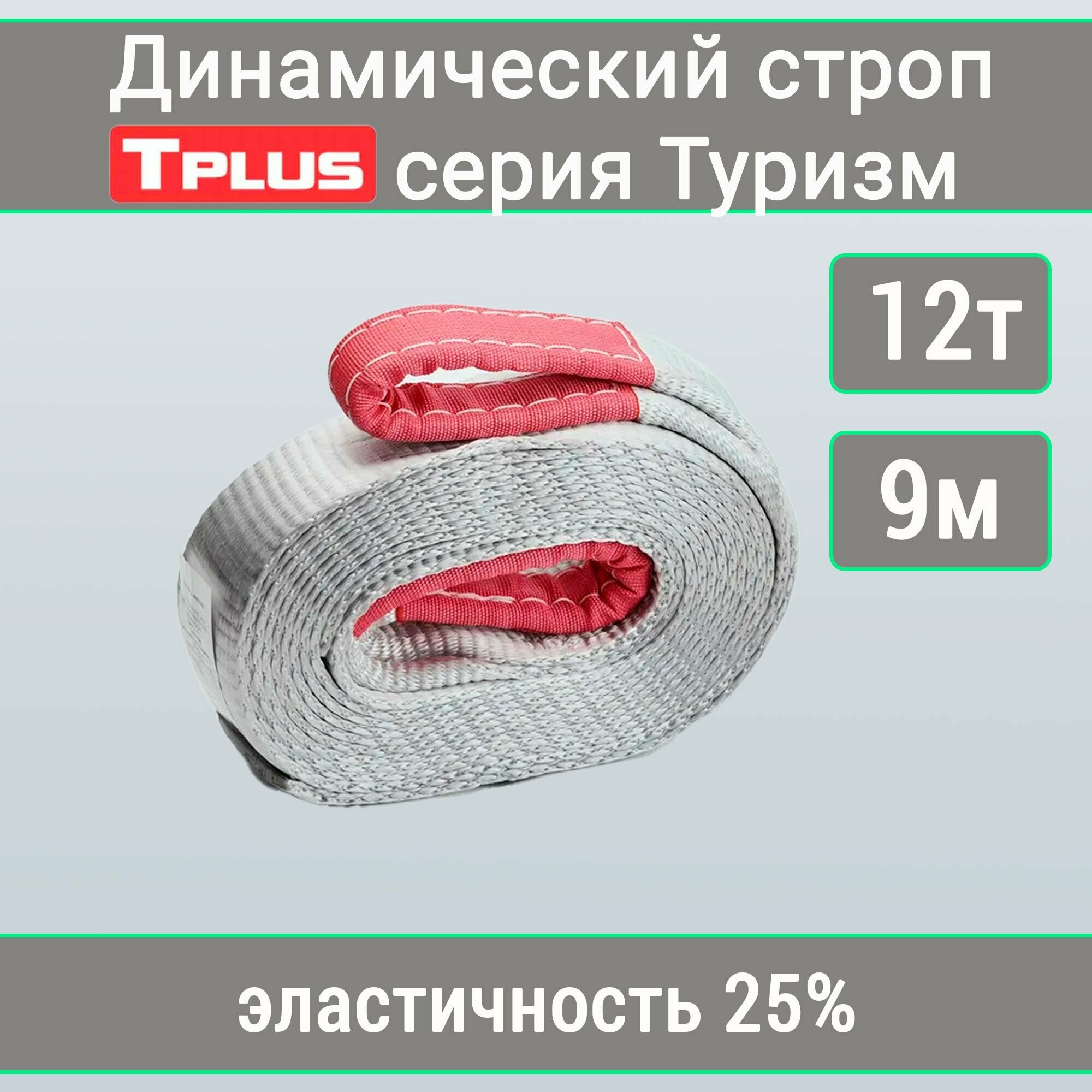 СохранитьДинамический строп (рывковый) 12т 9м серия "Туризм",Tplus + софт шаклы UTX09 (2 шт.) + мешок для хранения (гаситель троса, красный) интересное: