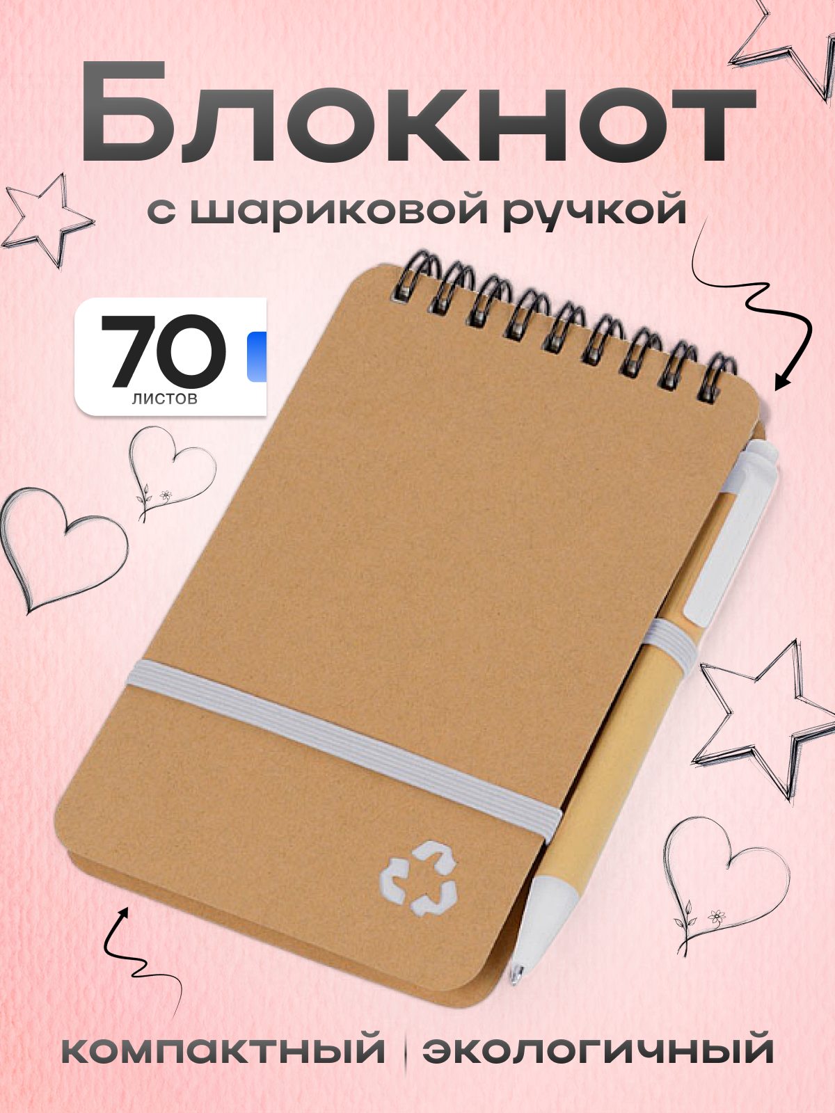 Блокнот с шариковой ручкой OASIS "Masai", 70 нелинованных страниц, белый интересное: