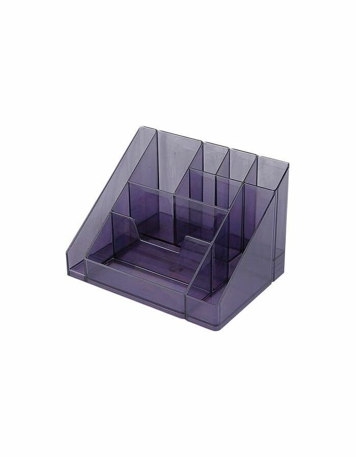 | Дополнительная информация | Материал корпуса:полистирол Вид товара:настольная подставка Цвет:тонированный серый Количество отделений:9 Вращающаяся основа:нет Размер:10,5*16*11,5 |