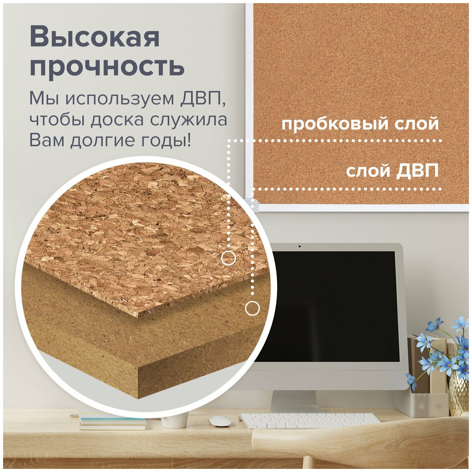 Доска пробковая 70х50 см, ПВХ рамка, гарантия 10 ЛЕТ, россия, BRAUBERG, 238188 интересное: