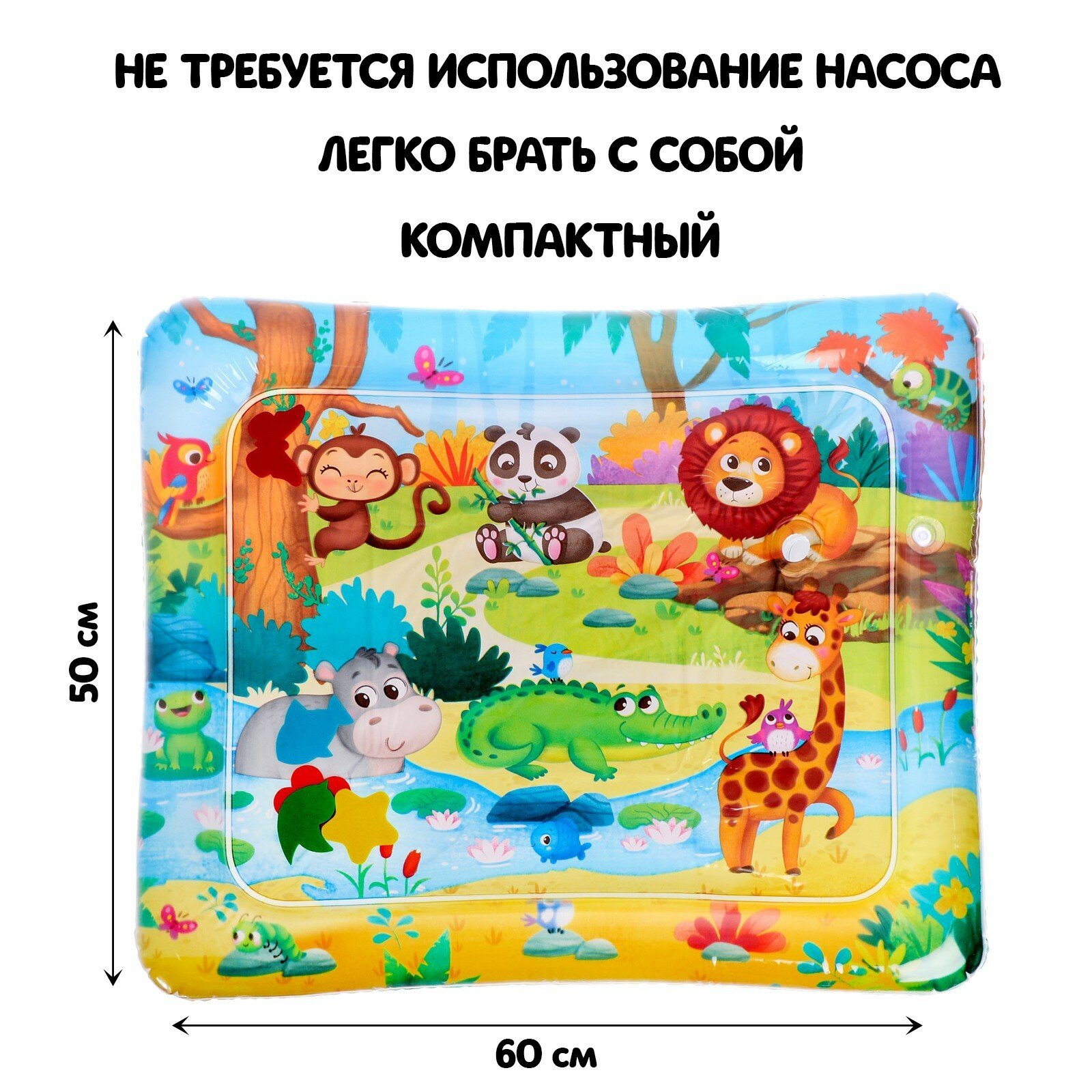 Акваковрик развивающий для малышей "Африка", водный (водяной) коврик с мягкими фигурками внутри, для развития мелкой моторики, 60х50 см интересное: