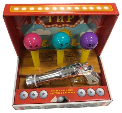 | Комплектация | пистолет, 6 безопасных пуль-шариков, 3 закрепленные мишени |