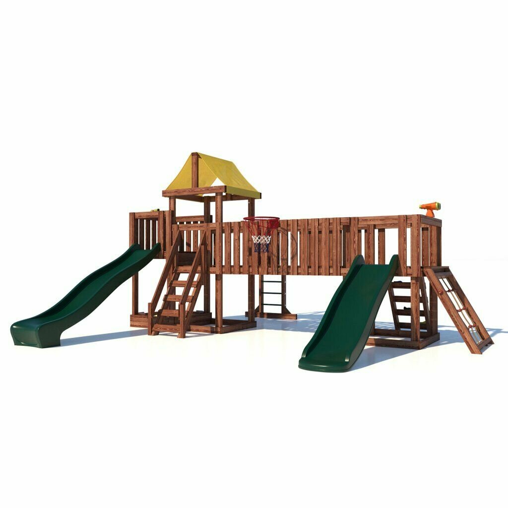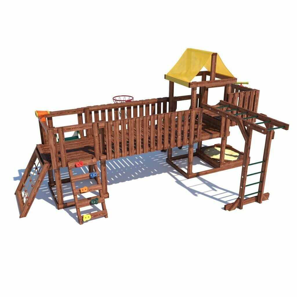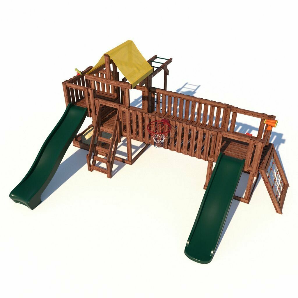 | В комплекте | баскетбольное кольцо, горка, домик, качели, лестница, мостик, песочница, подзорная труба, рукоход, сетка для лазания, скалолазная стенка |