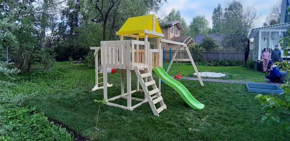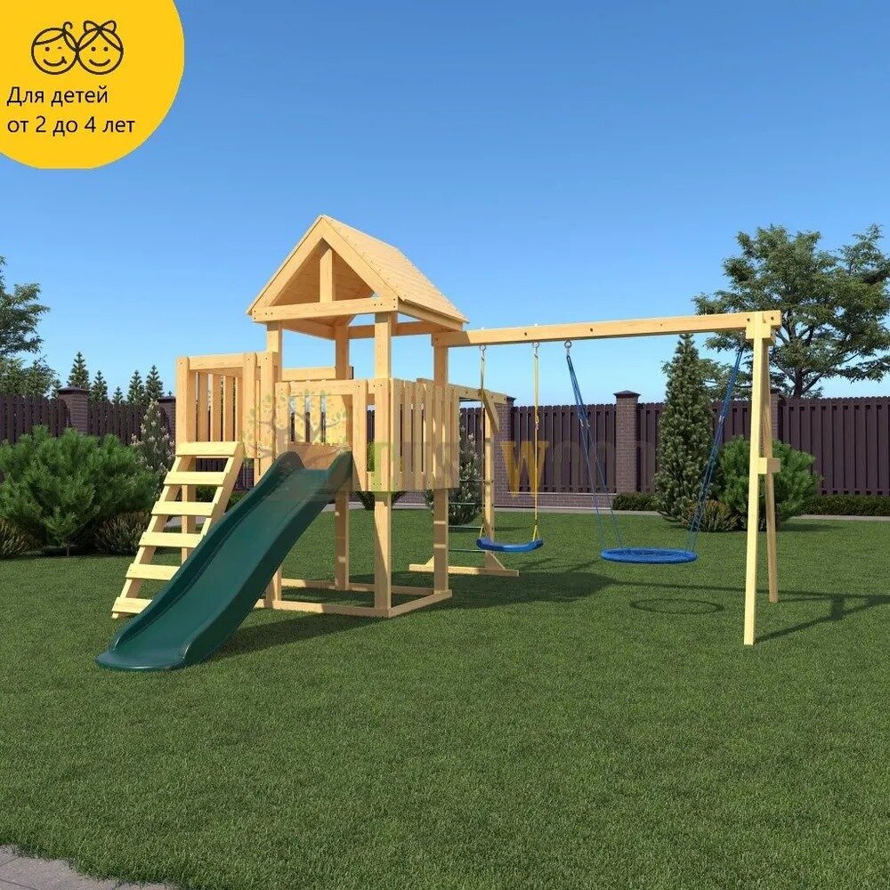 | В комплекте | домик, качели, лестница, рукоход |