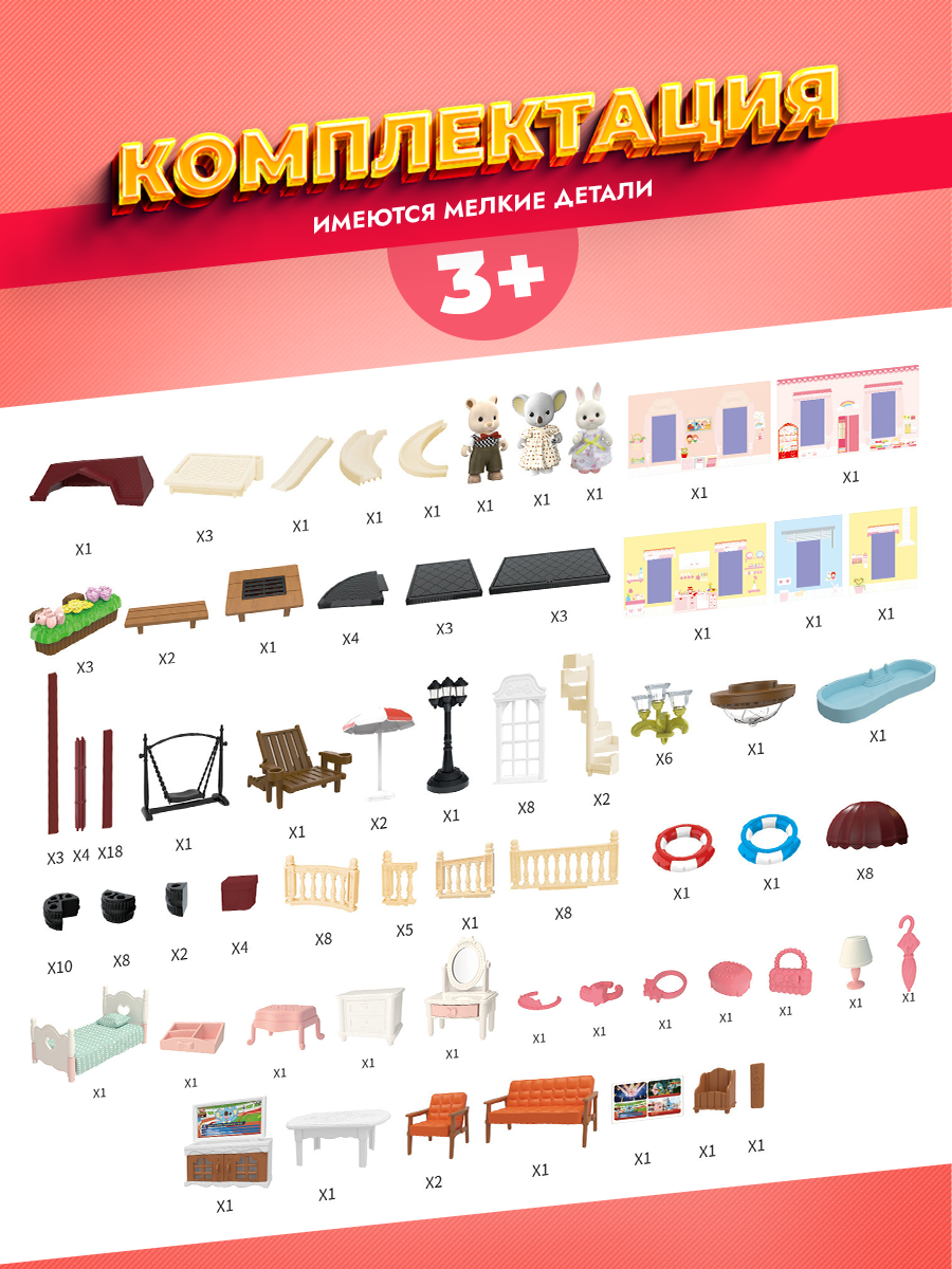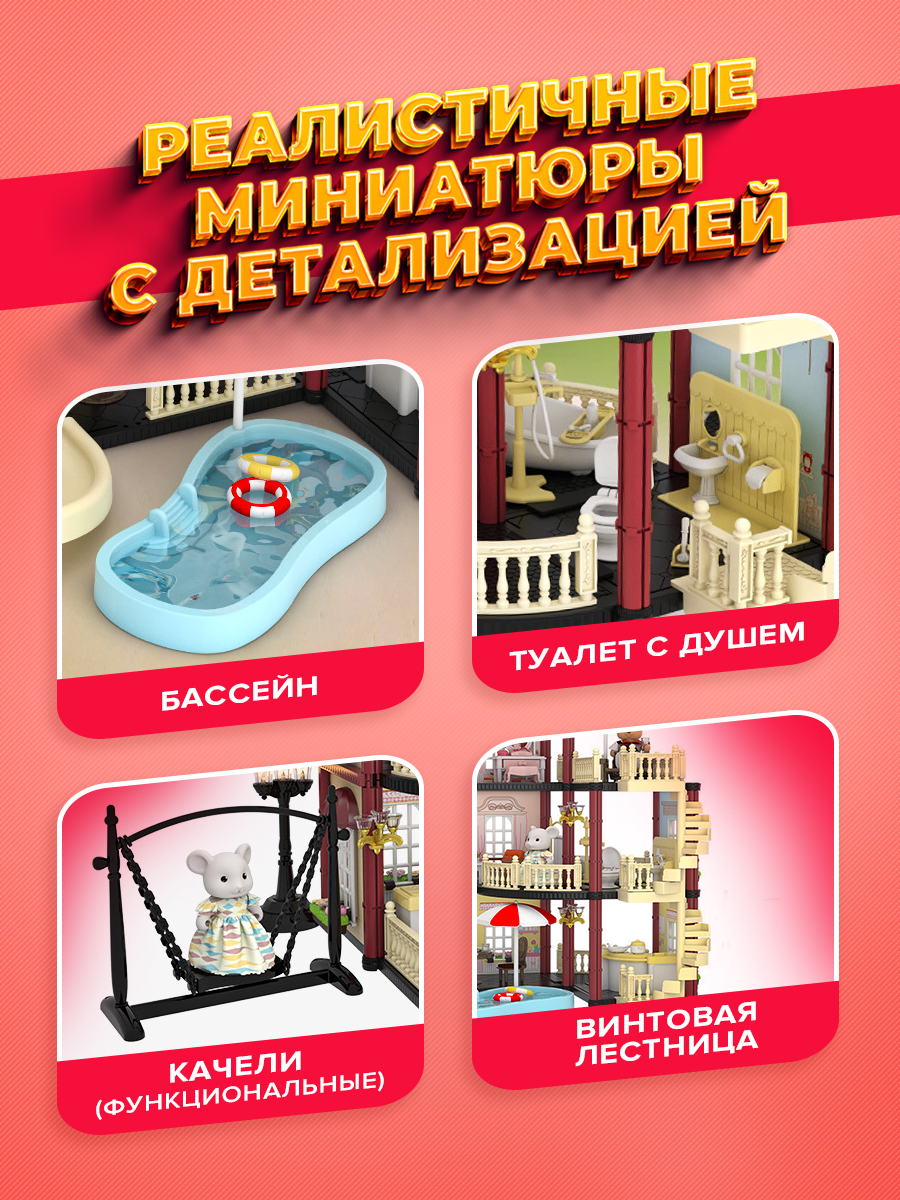 Развивающий кукольный домик с мебелью и подсветкой — Конструктор домик для кукол и фигурок животных интересное:
