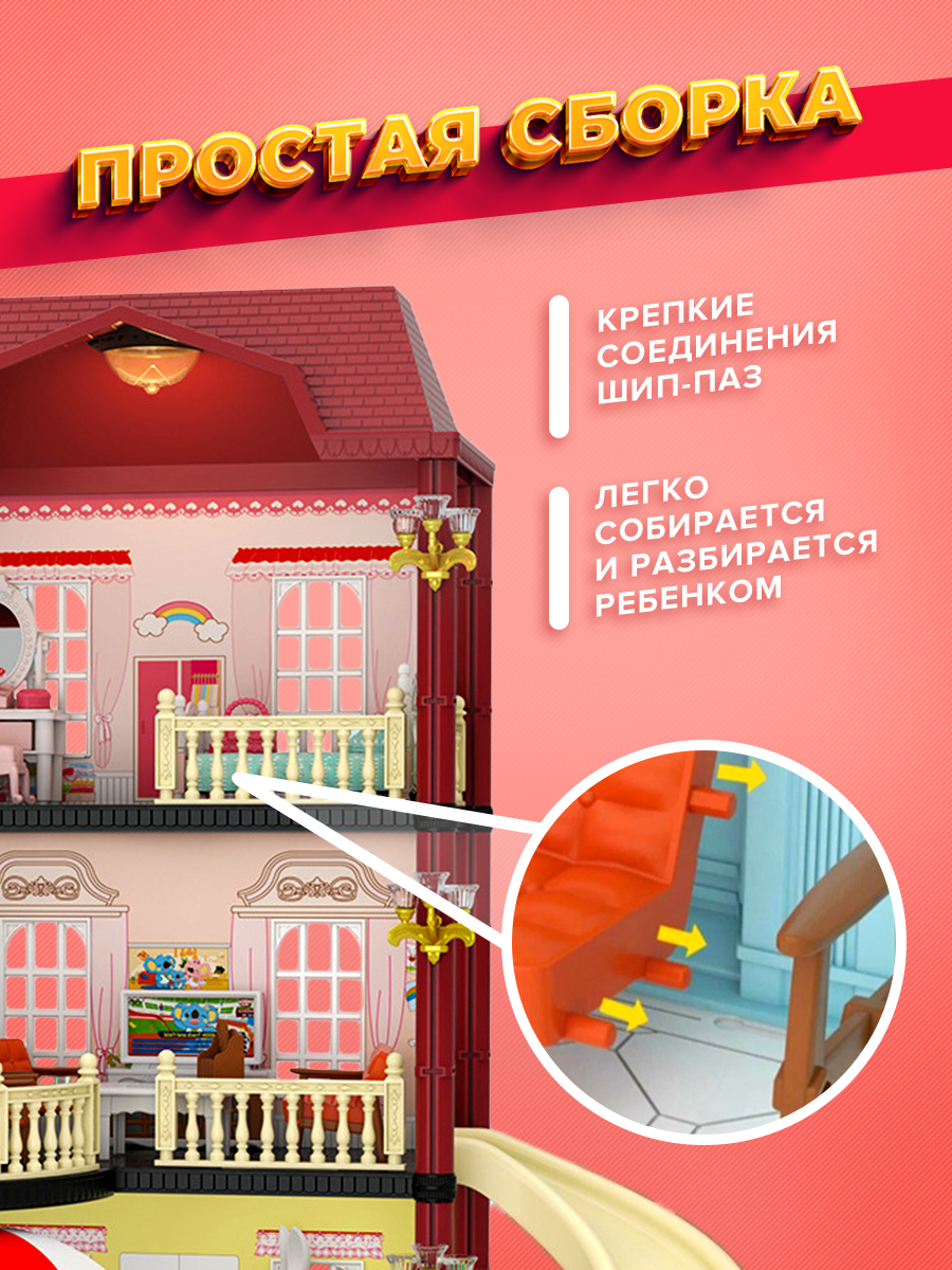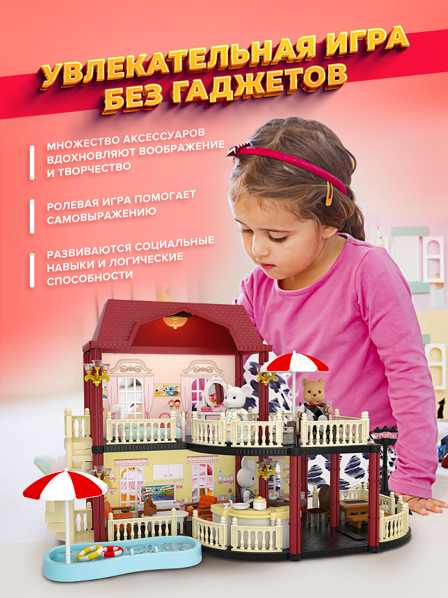 Купить Развивающий кукольный домик с мебелью и подсветкой — Конструктор домик для кукол и фигурок животных