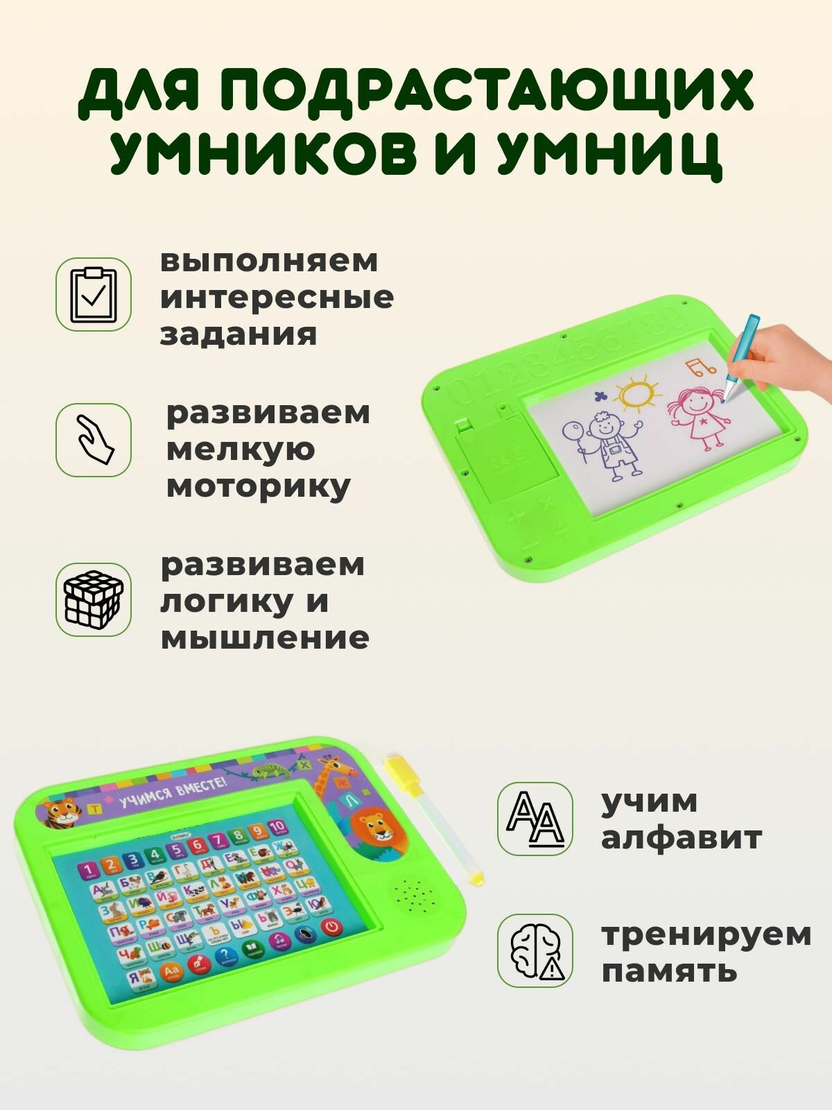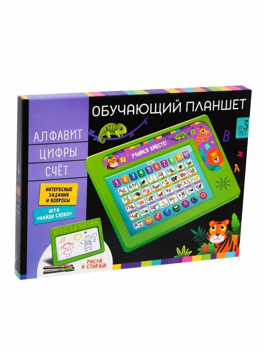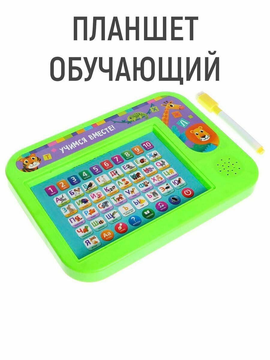 Купить Обучающий детский планшет "Учимся вместе" с доской для рисования/зеленый