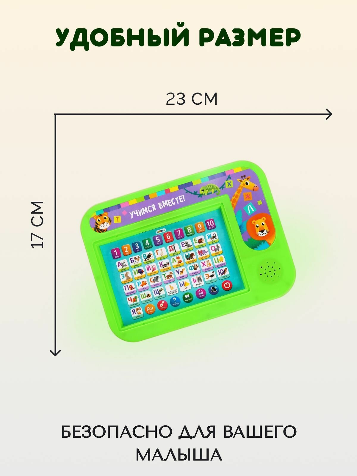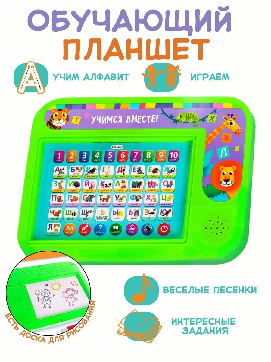 Обучающий планшет ZABIAKA "Учимся вместе!", изучаем алфавит, цифры, звуковые эффекты