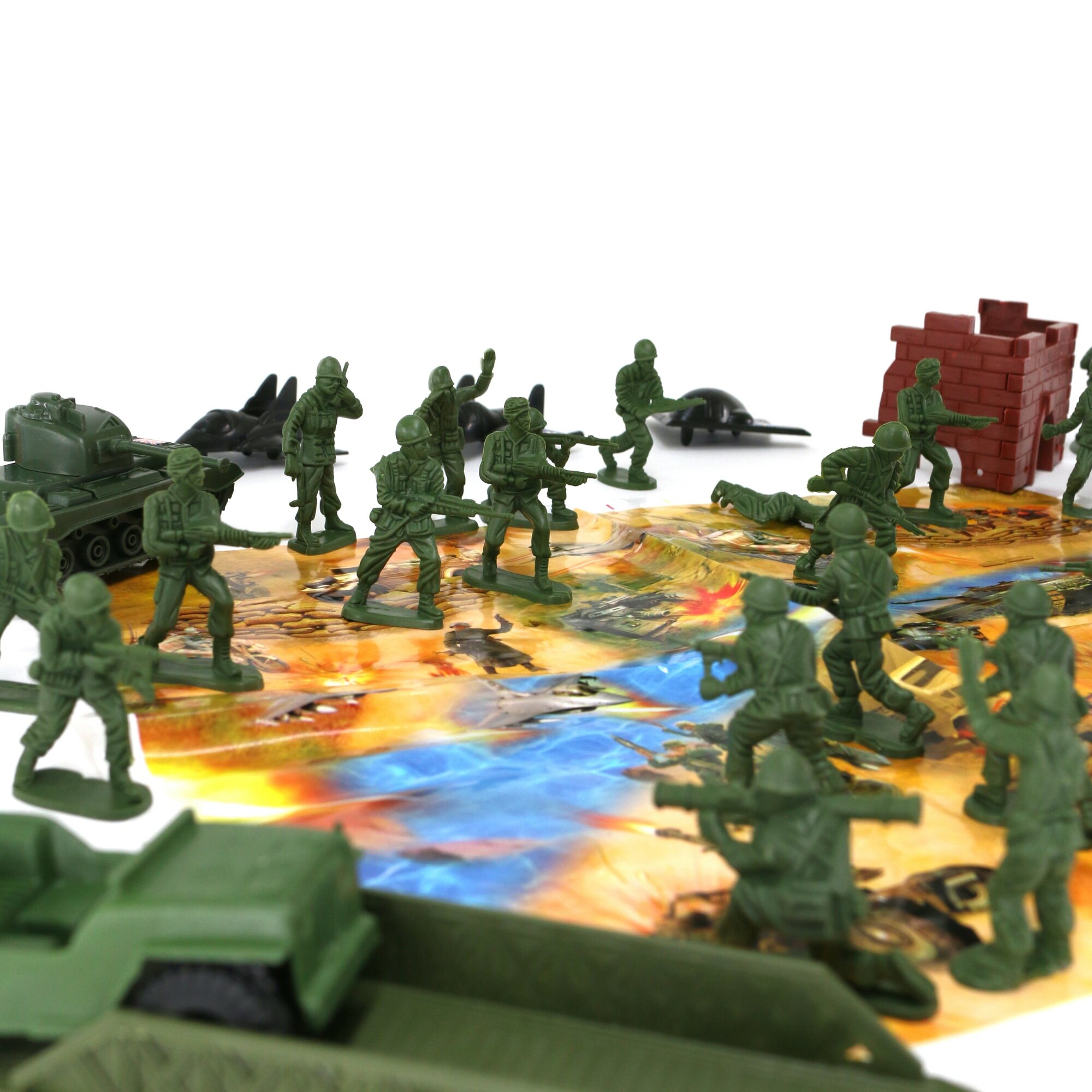 | Комплектация | фигурки военных, вертолеты-2 штуки, самолеты-2 штуки, военные машины-2 штуки, танка-2 штуки, истребители-2 штуки, карта |