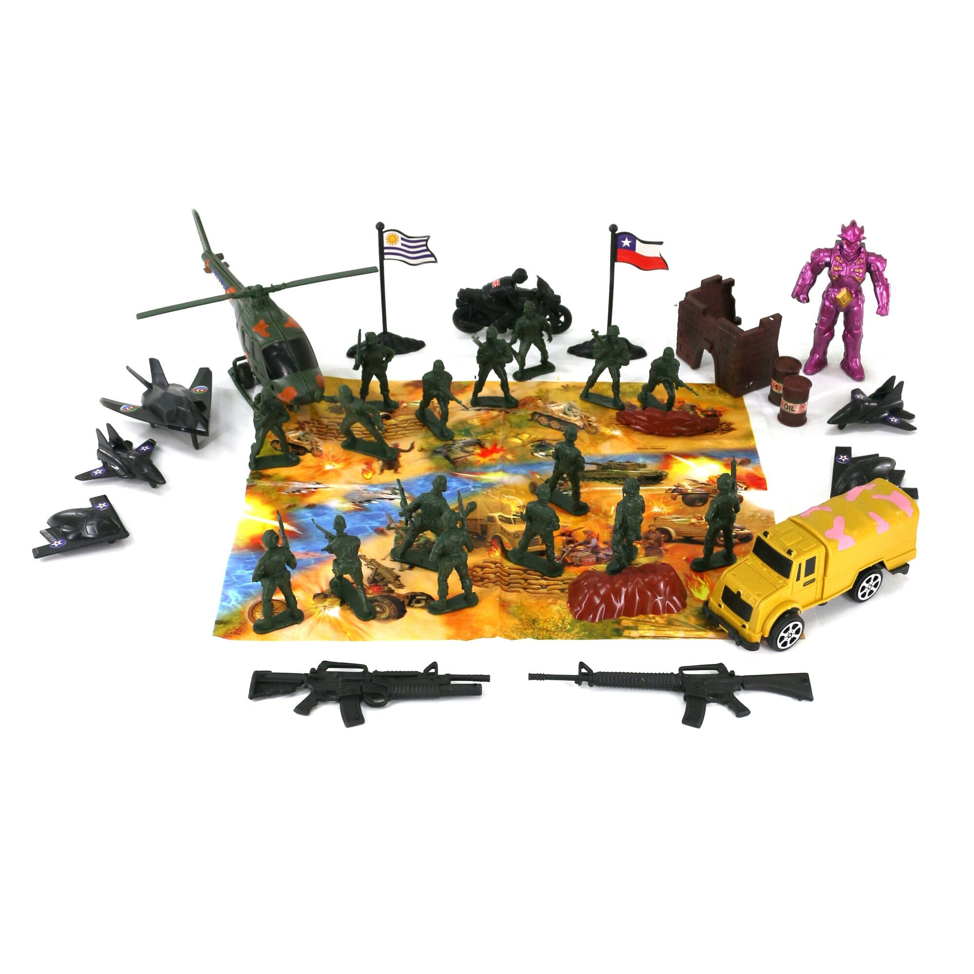 | Комплектация | фигурки военных, вертолеты-2 штуки, самолеты-2 штуки, военные машины-2 штуки, танка-2 штуки, истребители-2 штуки, карта |