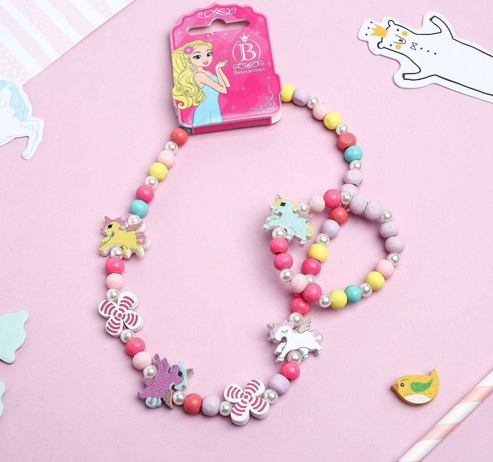 Набор детский «Выбражулька» 2 предмета: бусы, браслет, единорог, цвет микс, 3932733