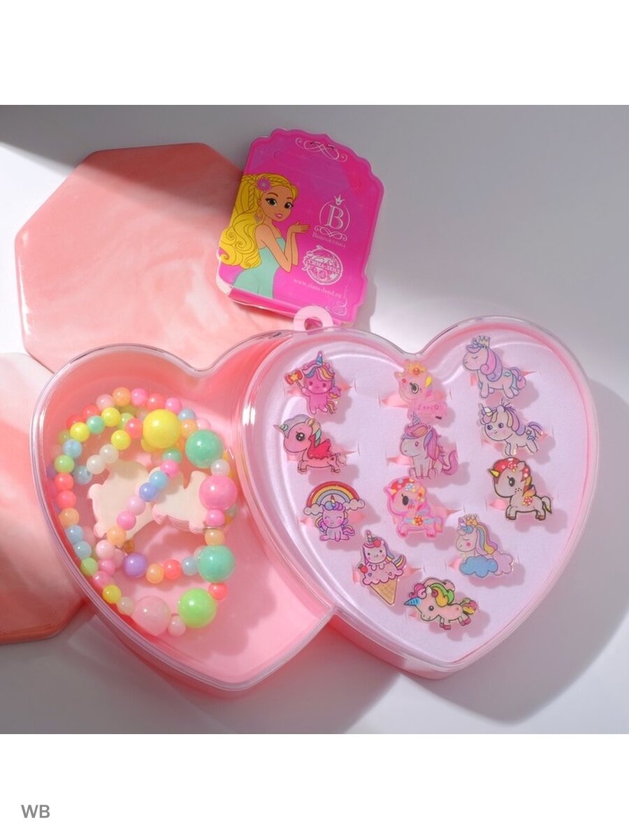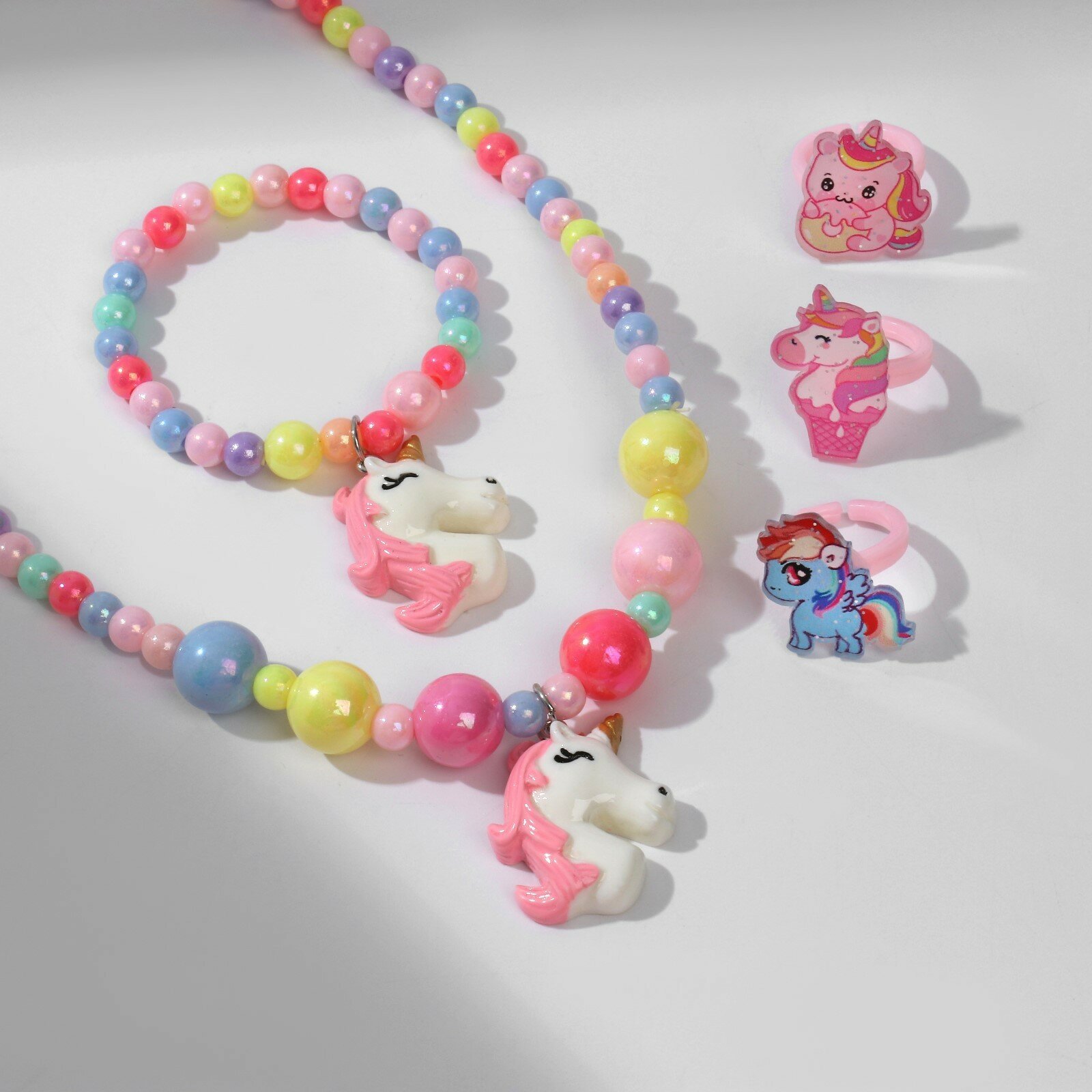 Купить Набор детский "Выбражулька" 14 предметов: 12 колец, кулон, браслет, единороги, цветной