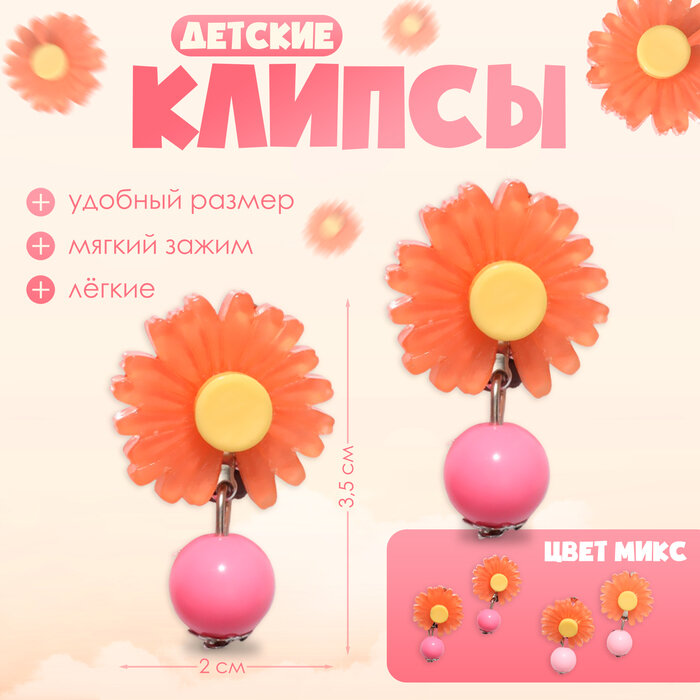 Клипсы "Выбражулька" цветок с бусиной ромашка, цвет микс интересное: