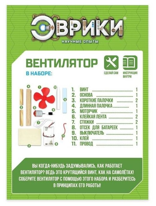 Набор для опытов эврики "Вентилятор", работает от батареек интересное: