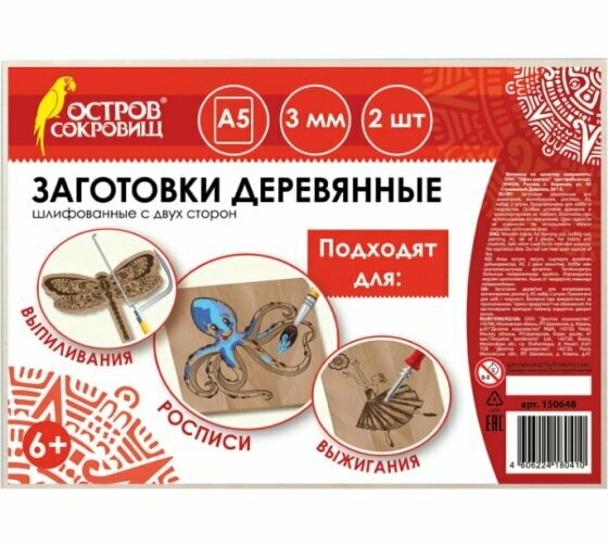 Купить Заготовки для поделки, выжигания, выпиливания, А5, 2 шт.