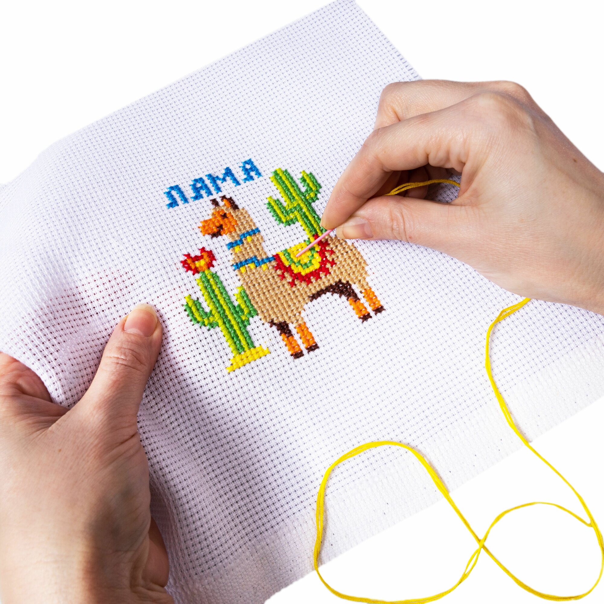 Купить Вышивка крестиком "Лама" для начинающих, набор для детского творчества, вышивание крестом с цветной схемой и канвой, размер 26 х 26 см, в конверте