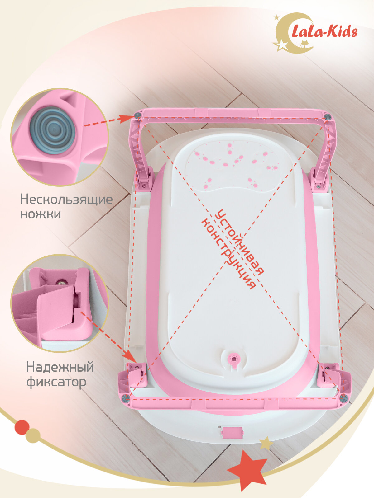 Ванночка для купания новорожденных складная с термометром и матрасом "Принцессы" LaLa-Kids розовая