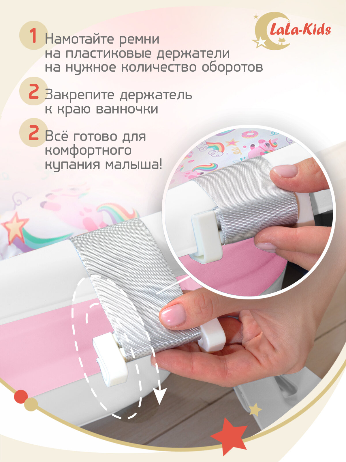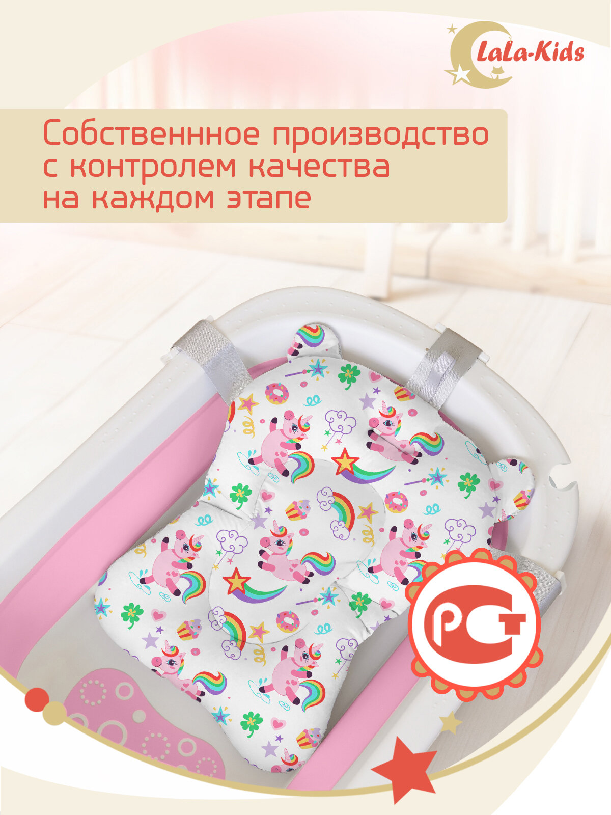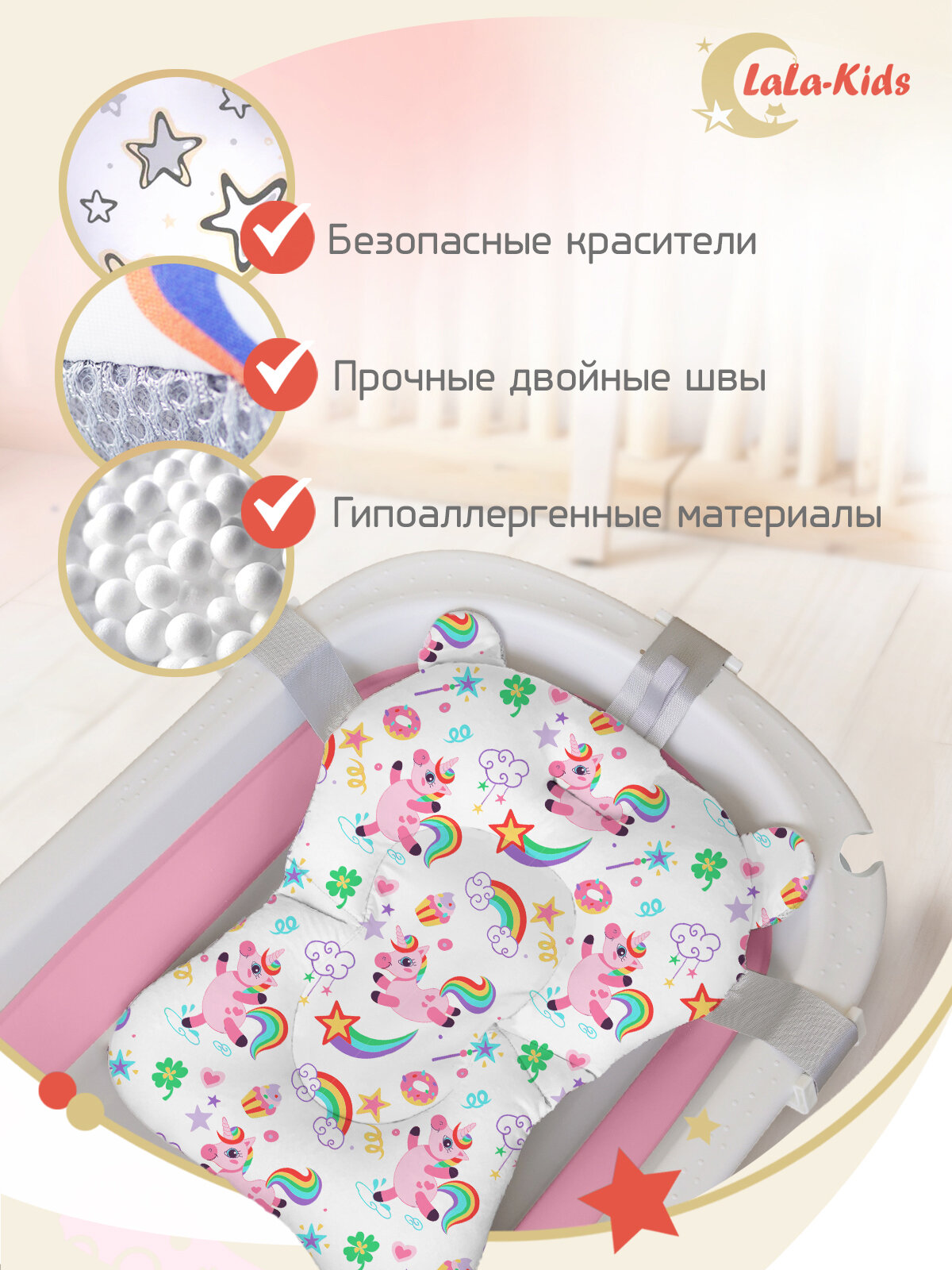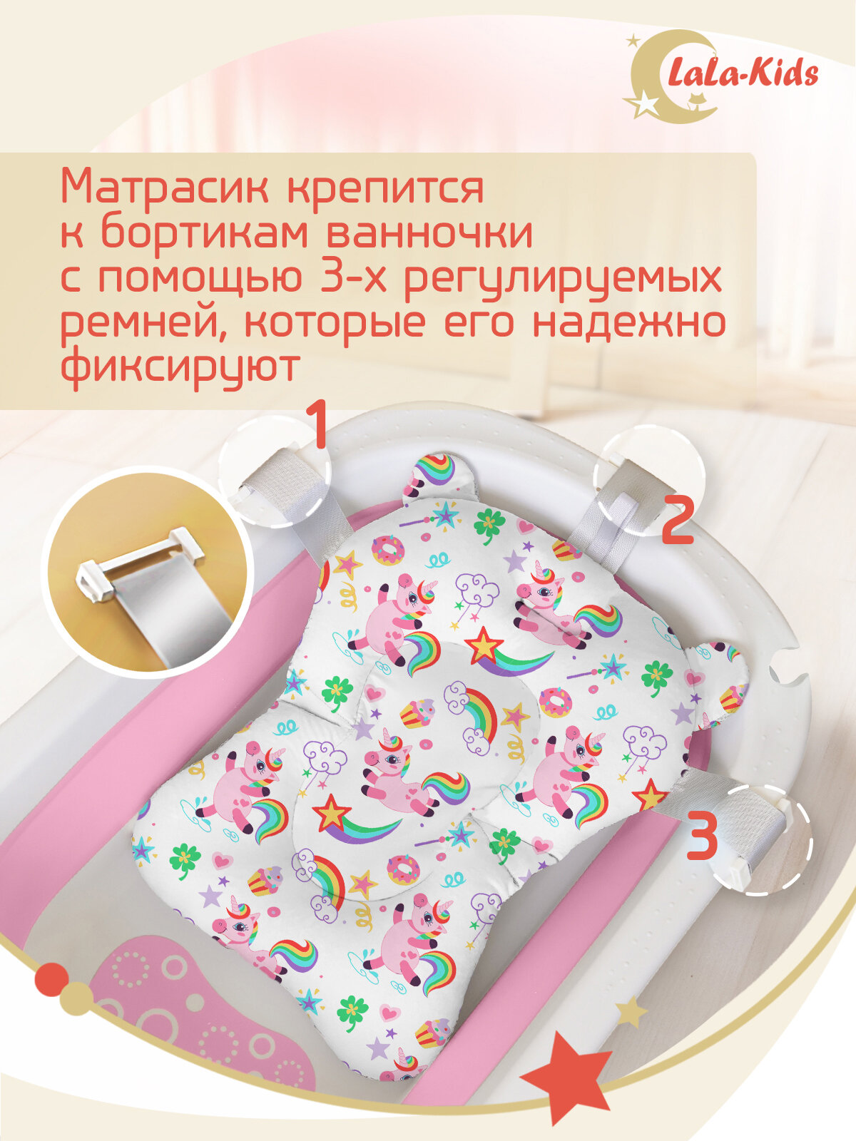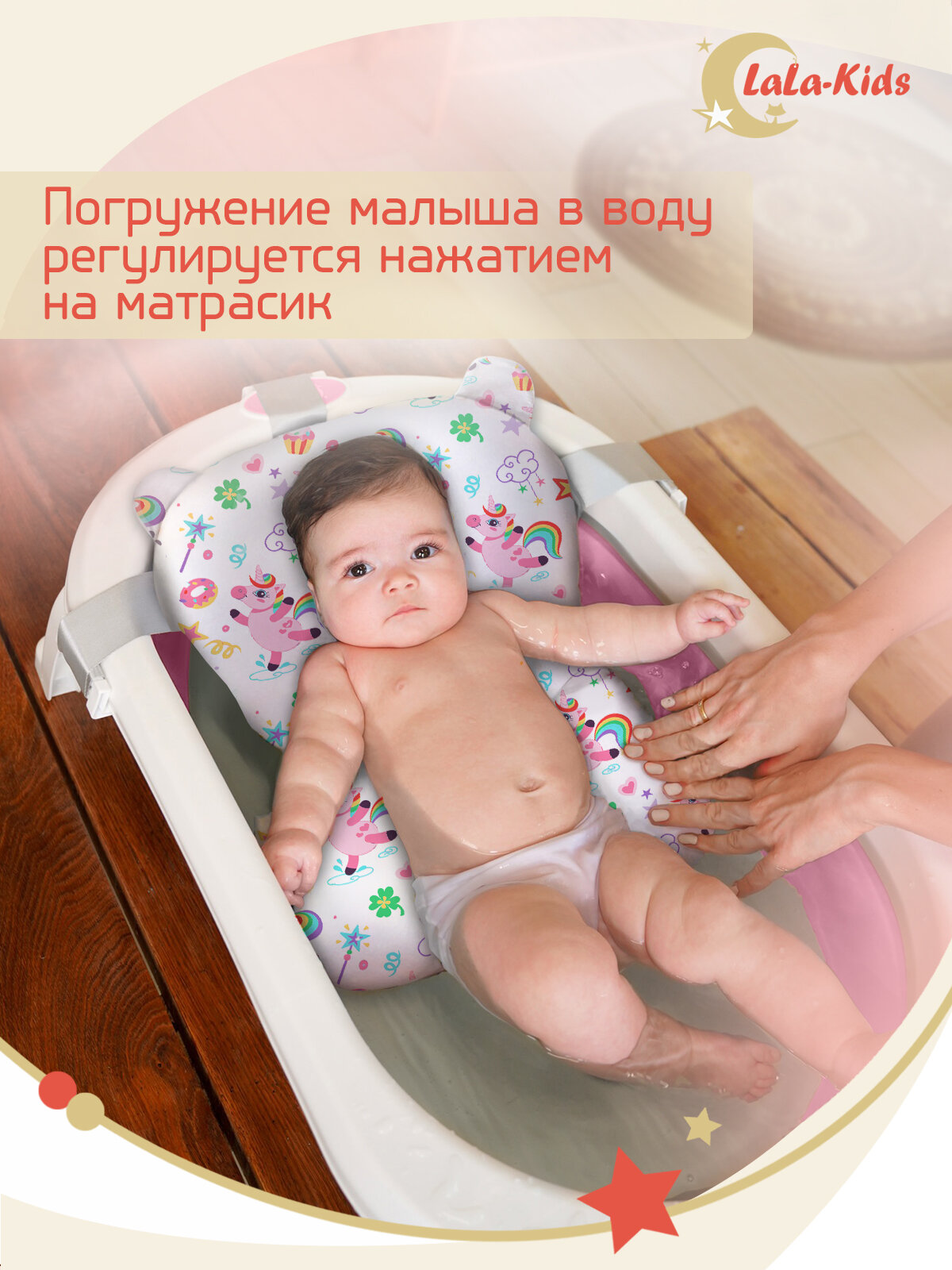 Купить Ванночка для купания новорожденных складная с термометром и матрасом "Единорожки" LaLa-Kids розовая