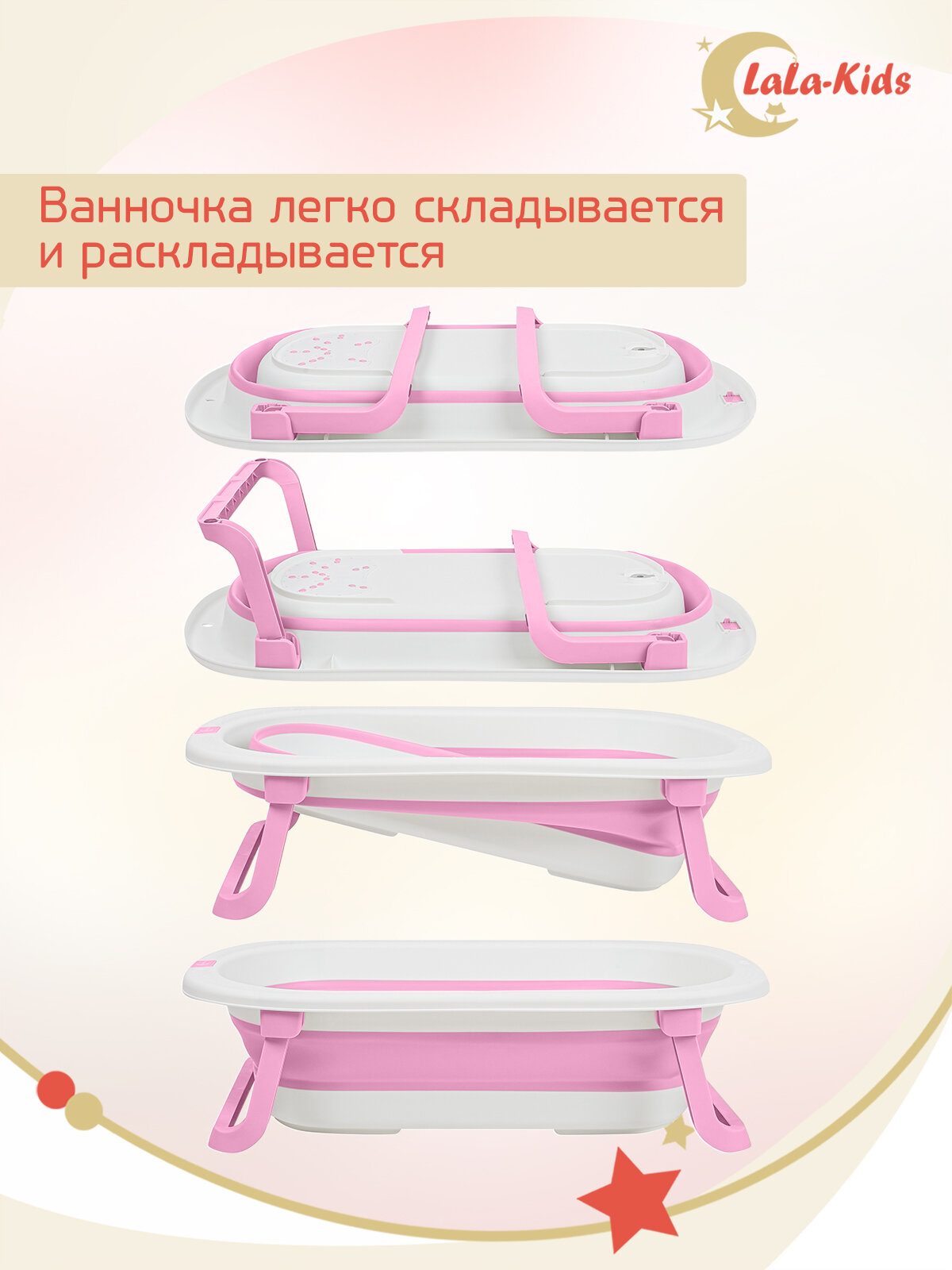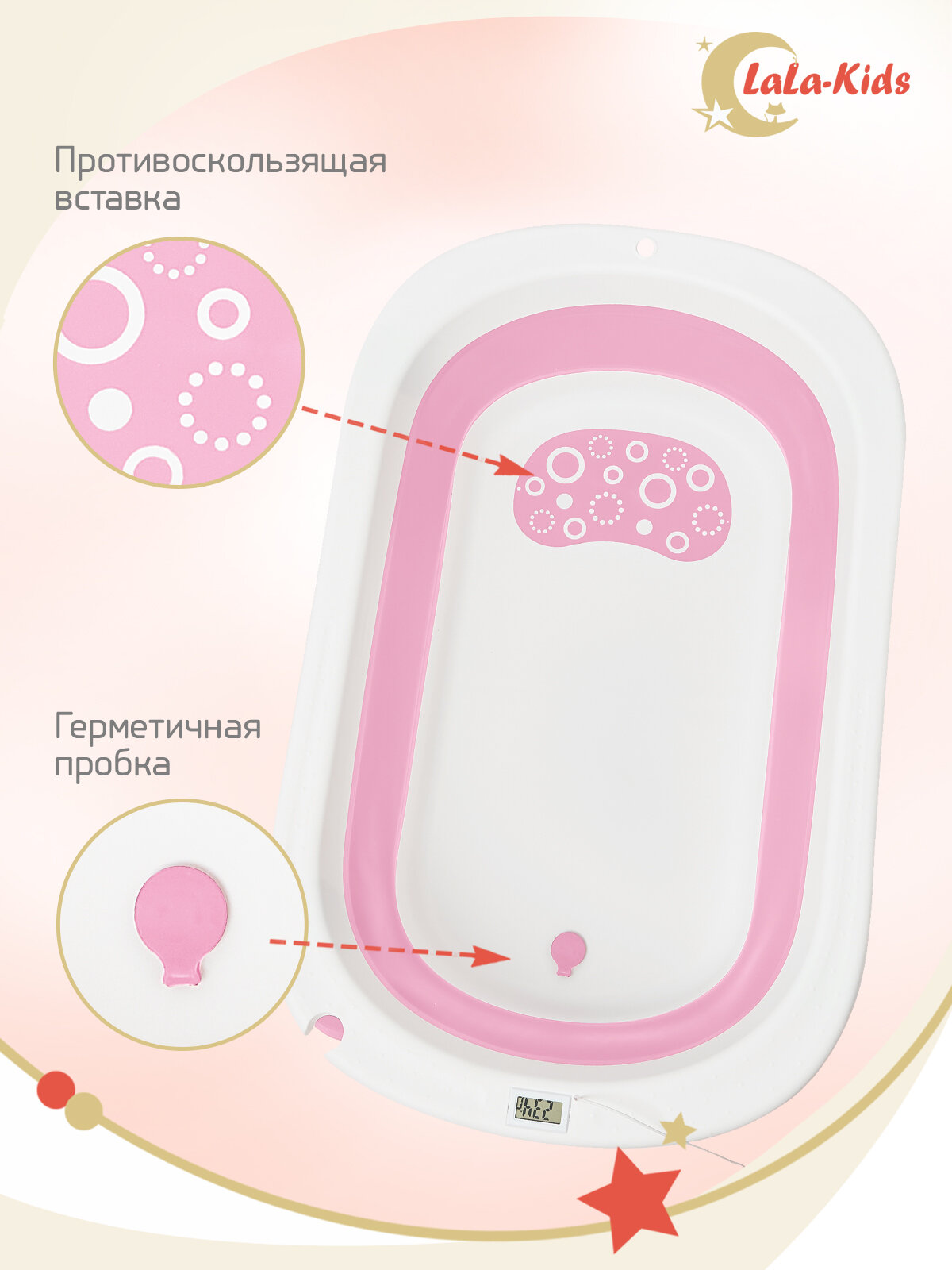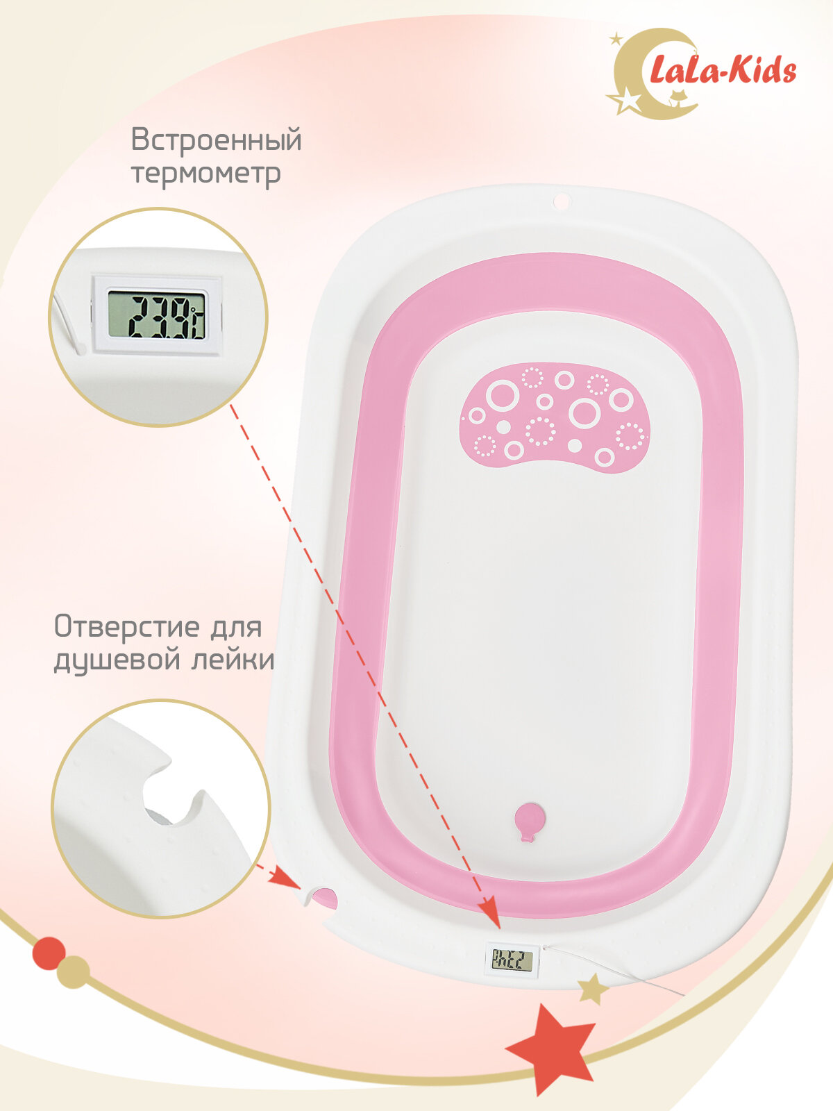 Ванночка складная с термометром для купания новорожденных LaLa-Kids, матрасик-горка для купания Принцессы