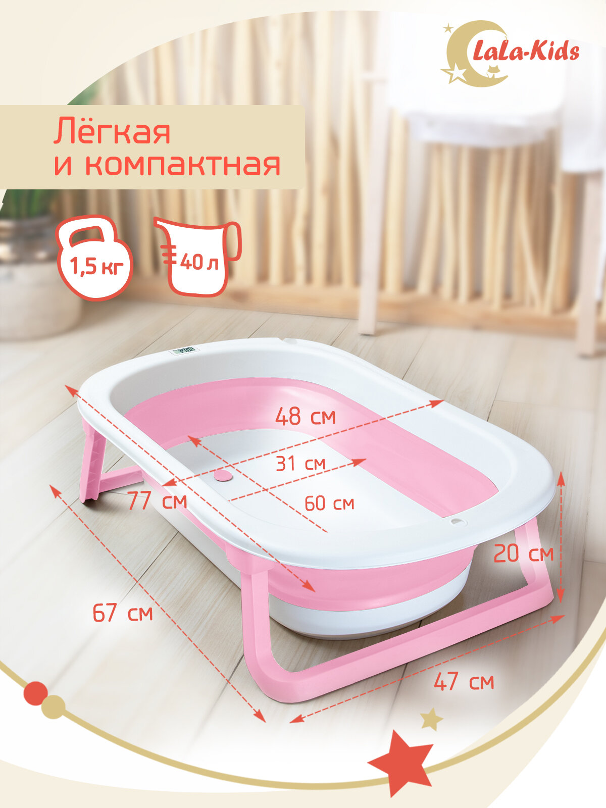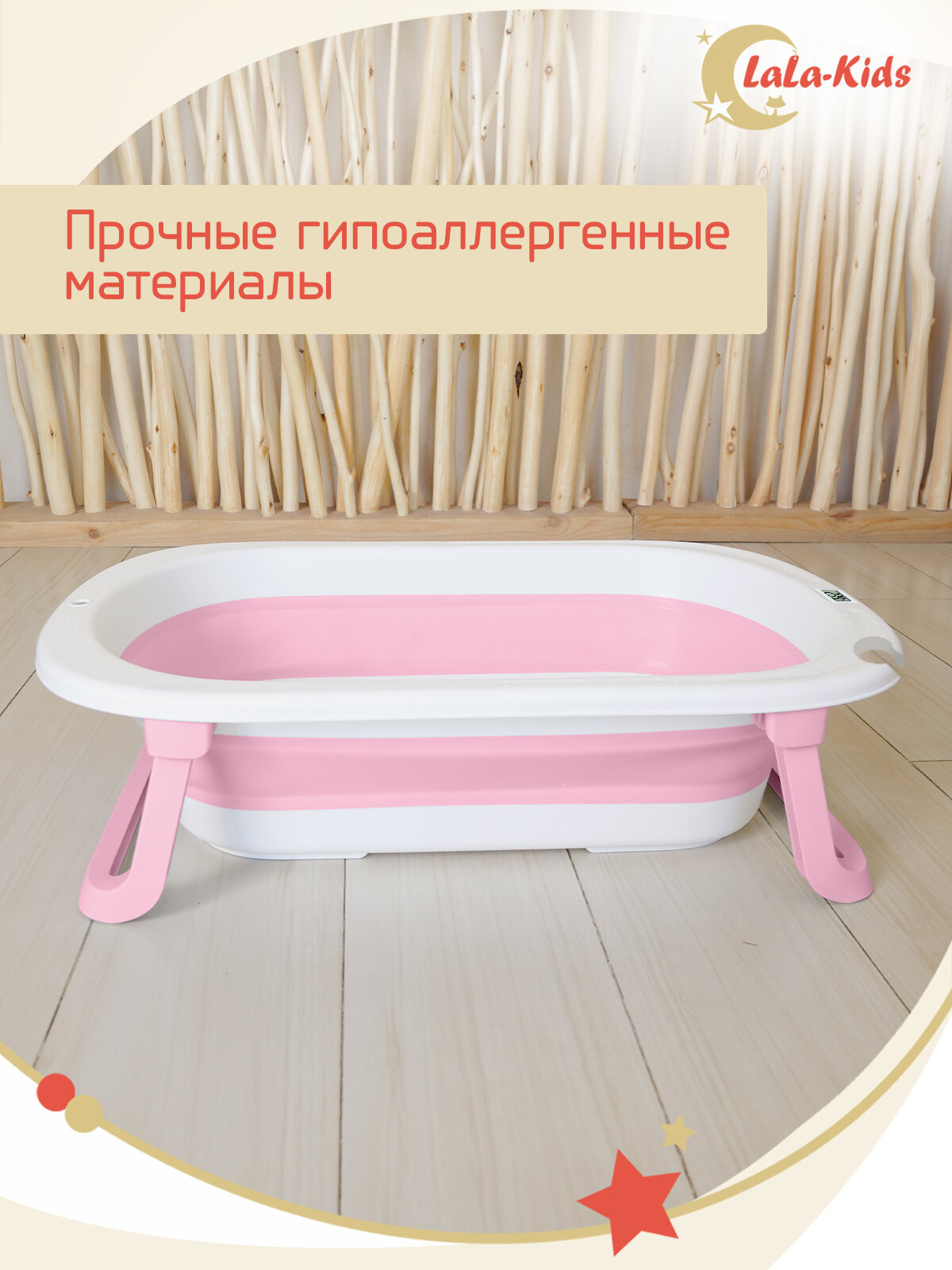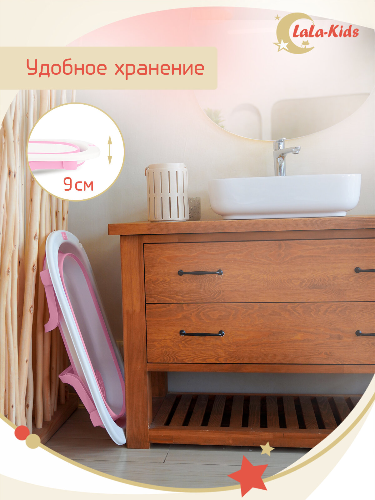 Ванночка складная с термометром для купания новорожденных LaLa-Kids, матрасик-горка для купания Принцессы