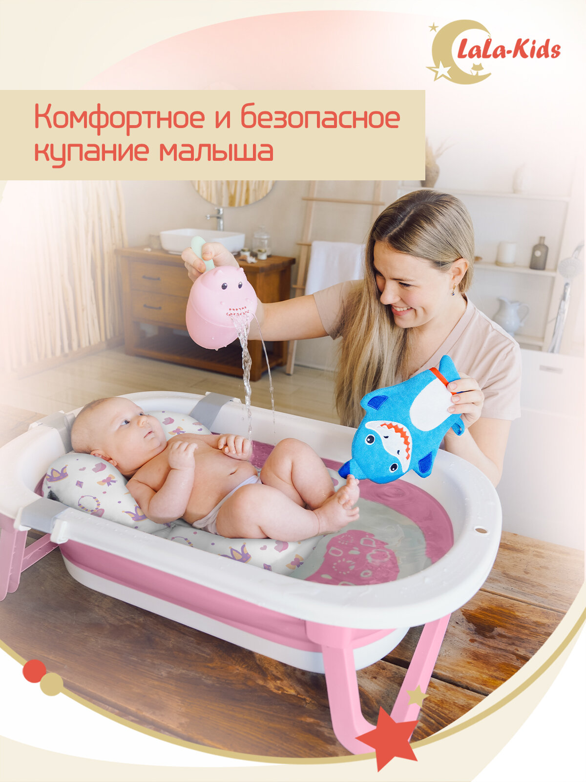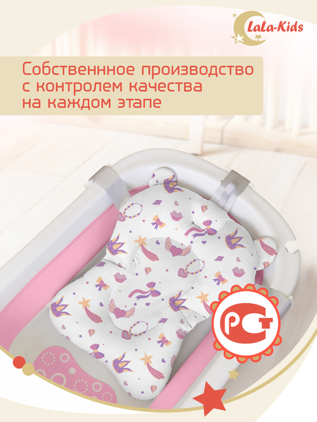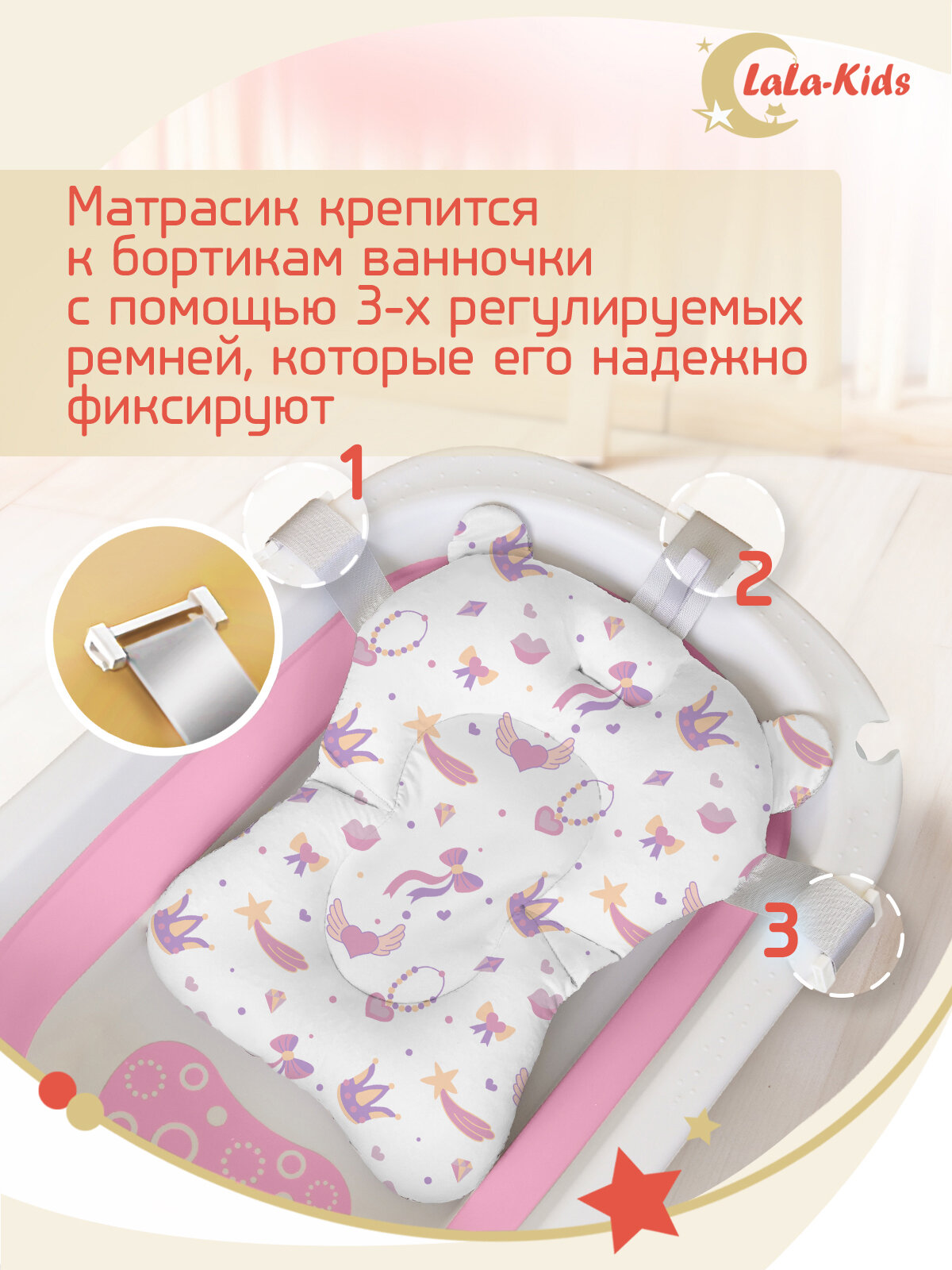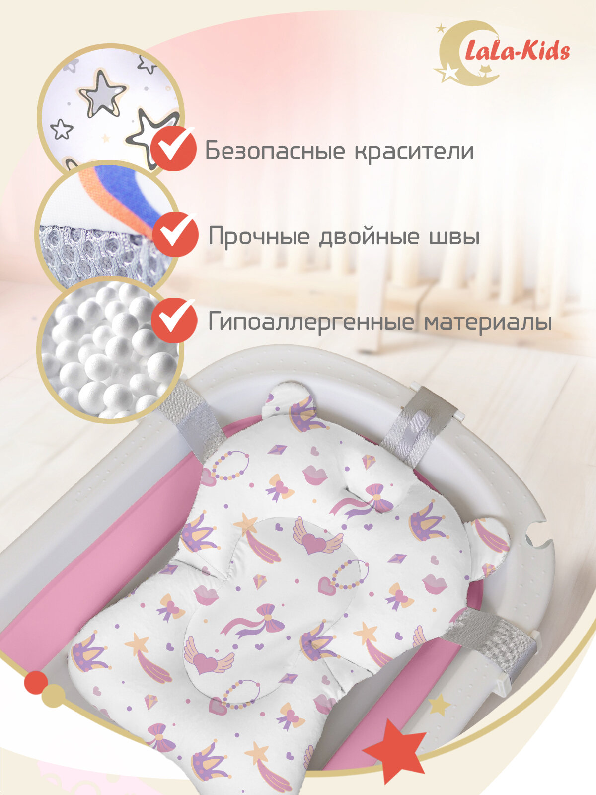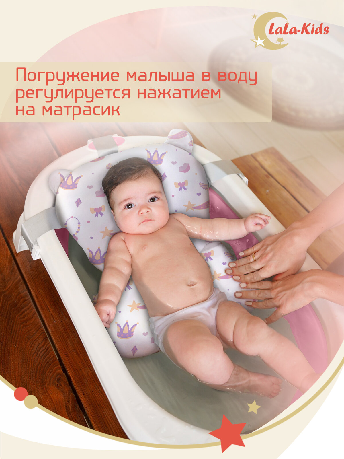 Ванночка складная с термометром для купания новорожденных LaLa-Kids, матрасик-горка для купания Принцессы