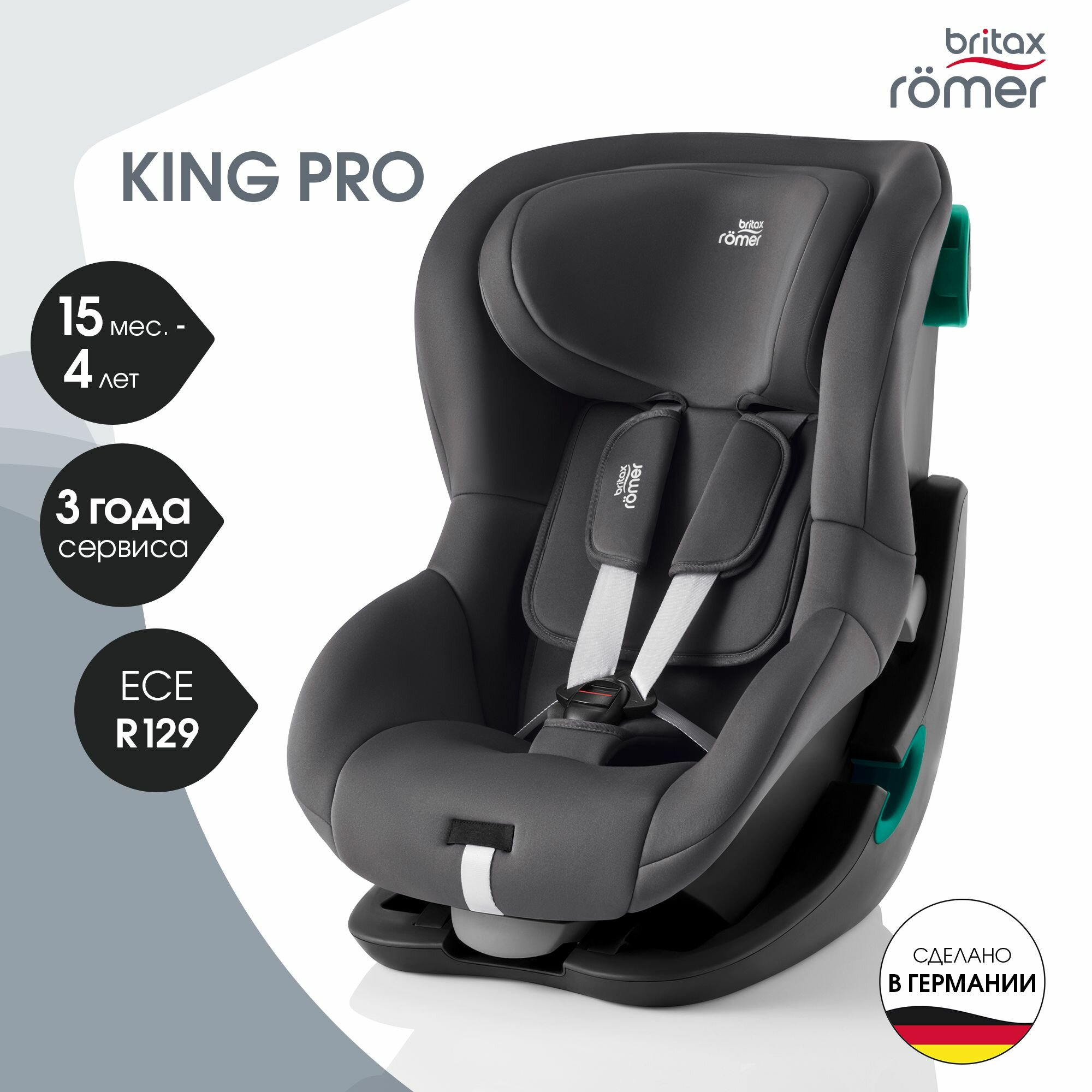 СохранитьАвтокресло детское Britax Roemer KING PRO Midnight Grey для детей с 15 месяцев до 4 лет, ростом 76 - 105 см, до 20 кг, серый интересное: