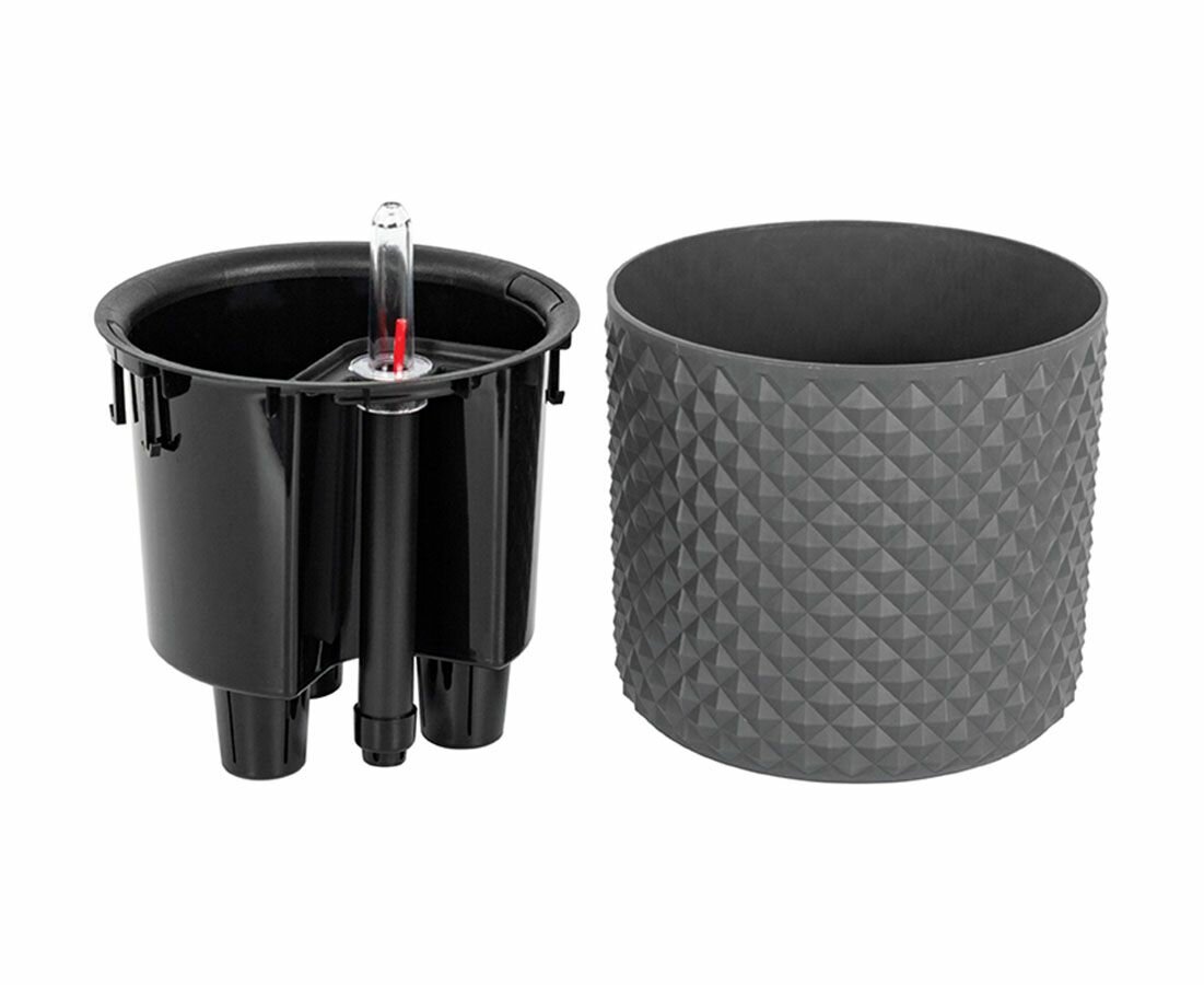 Кашпо Idea со вставкой и автополивом Фасет 15 см х 14 см, 2 литра, графитовый