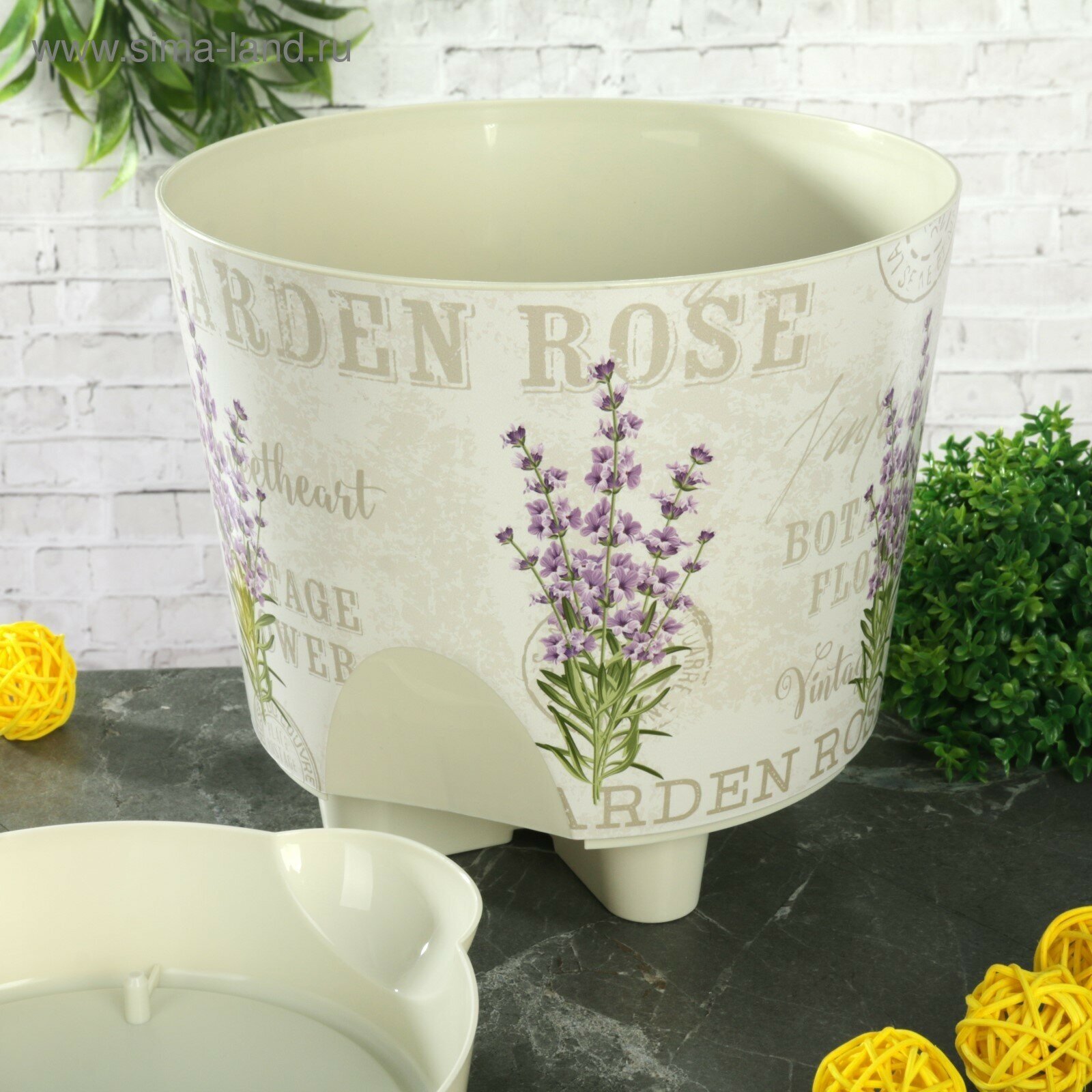 Кашпо IDEA Ника d18 см 2,7 л полипропиленовое белое с лавандой