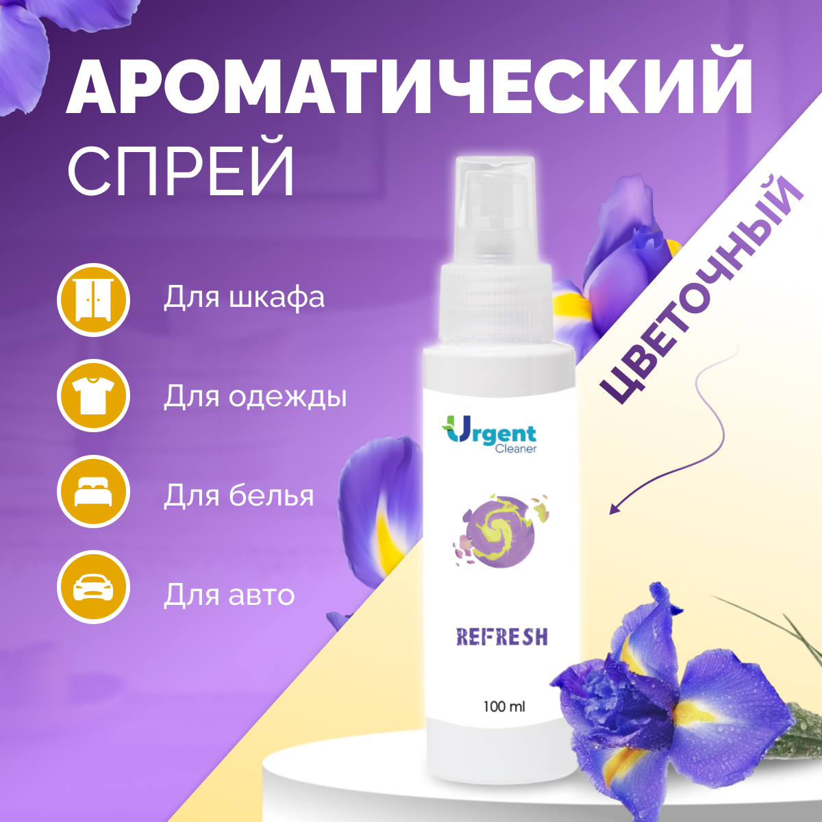 Купить Ароматизатор Urgent для дома,шкафа,белья с цветочным ароматом, спрей 100мл