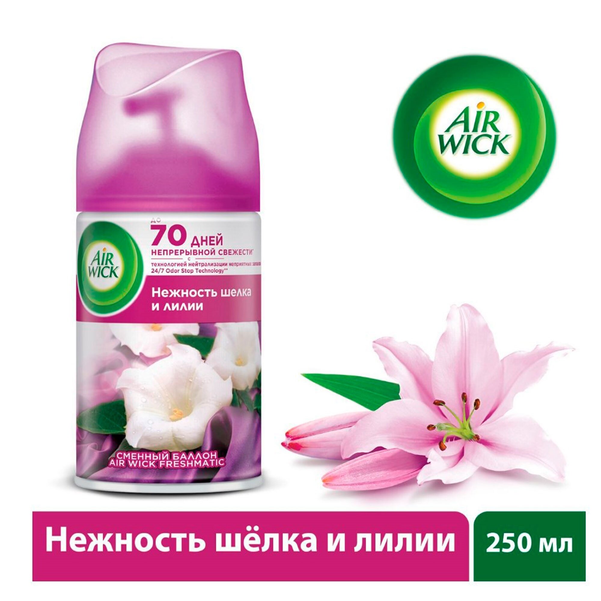 Сменный баллон к автоматическому освежителю воздуха Air Wick Freshmatic Нежный шелк и лилия, 250 мл