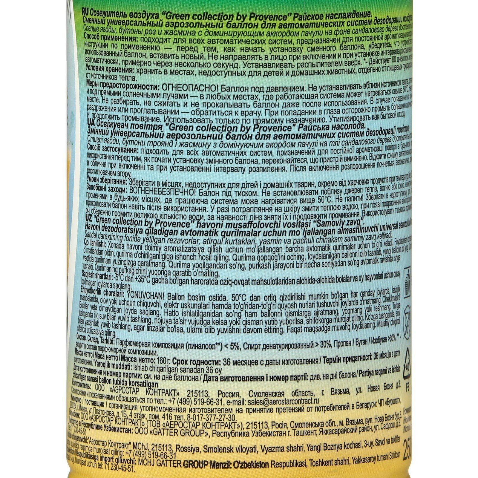 Освежитель воздуха «Green collection by Provence»: «Райское наслаждение», универсальный сменный баллон