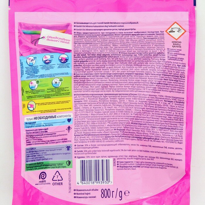 СохранитьПятновыводитель и усилитель стирки для цветного белья и вещей порошок Vanish Oxi Advance, 800г интересное: