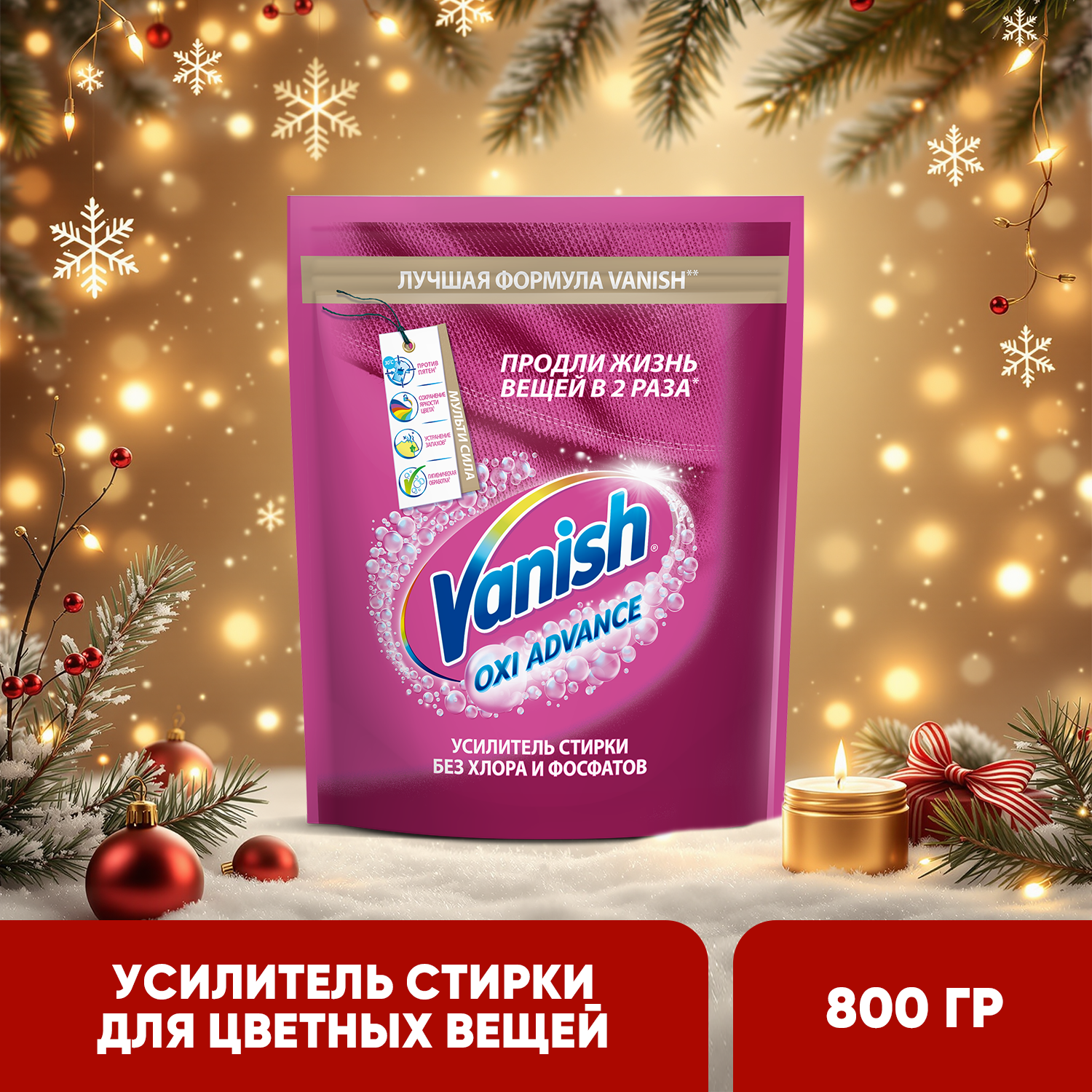 Средство для удаления пятен Vanish 800 г "Oxi Advance", для цветной ткани 3143349