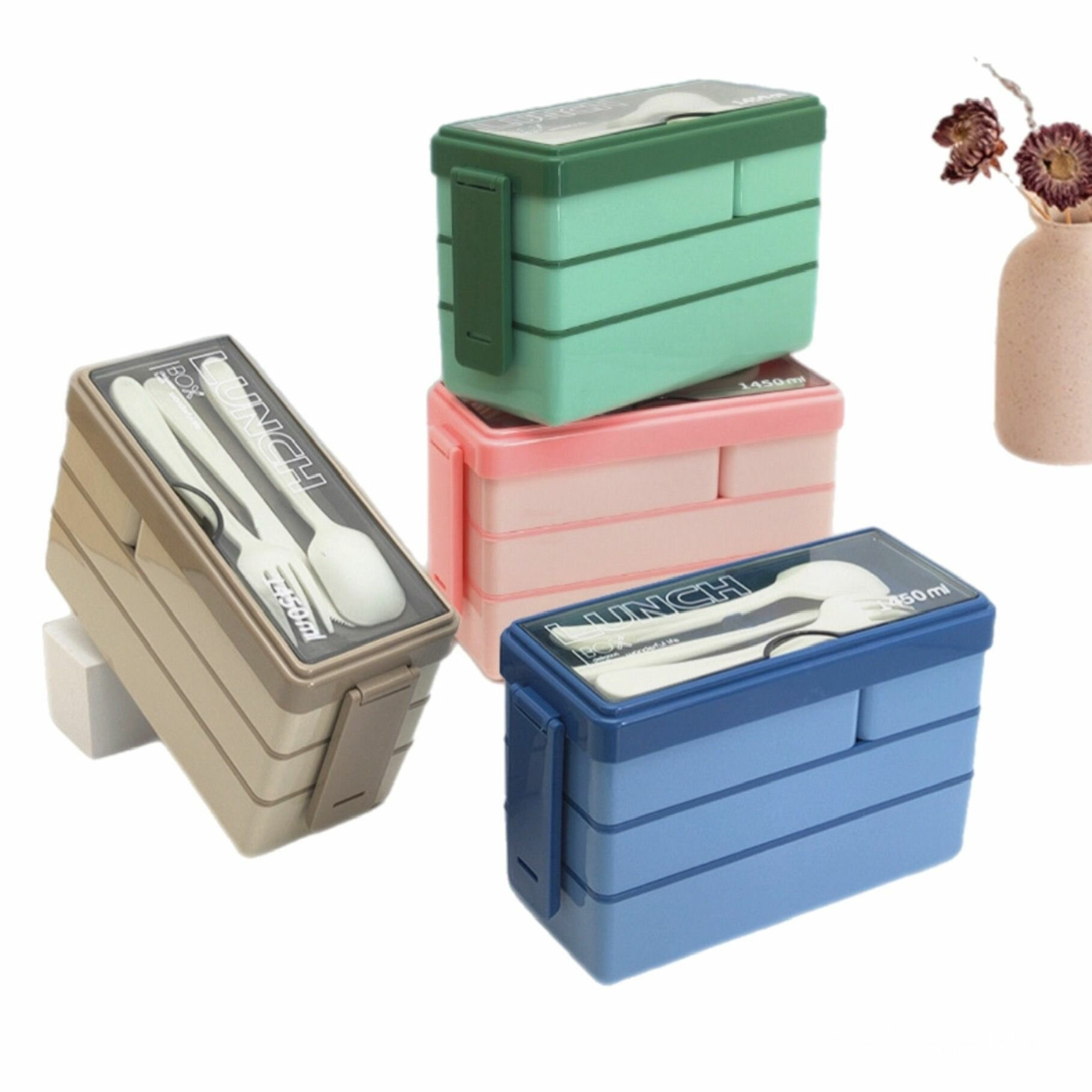 Ланч-бокс герметичный на три отделения с сумкой, зеленый, 1400 мл