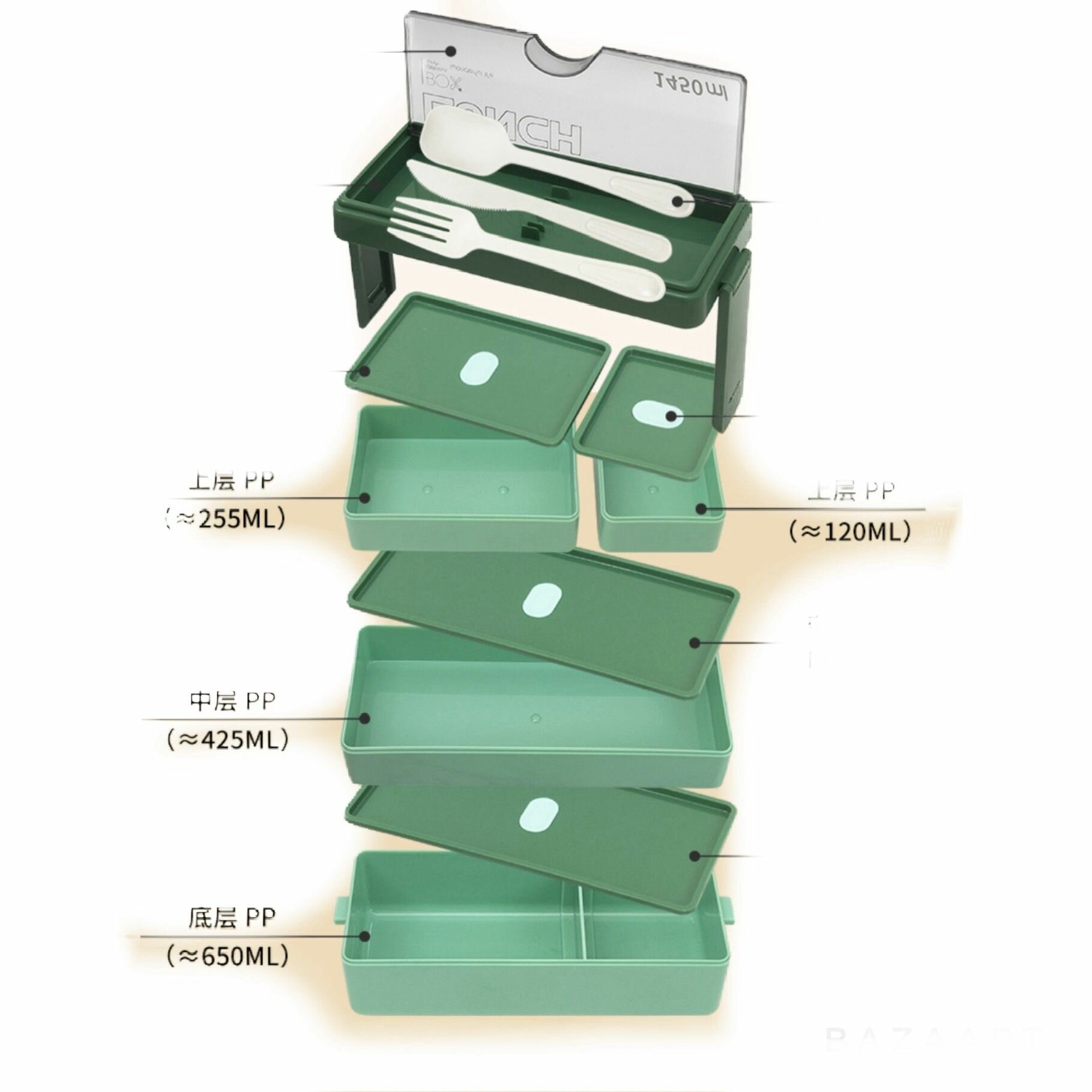 Ланч-бокс герметичный на 4 отделения бежевый интересное: