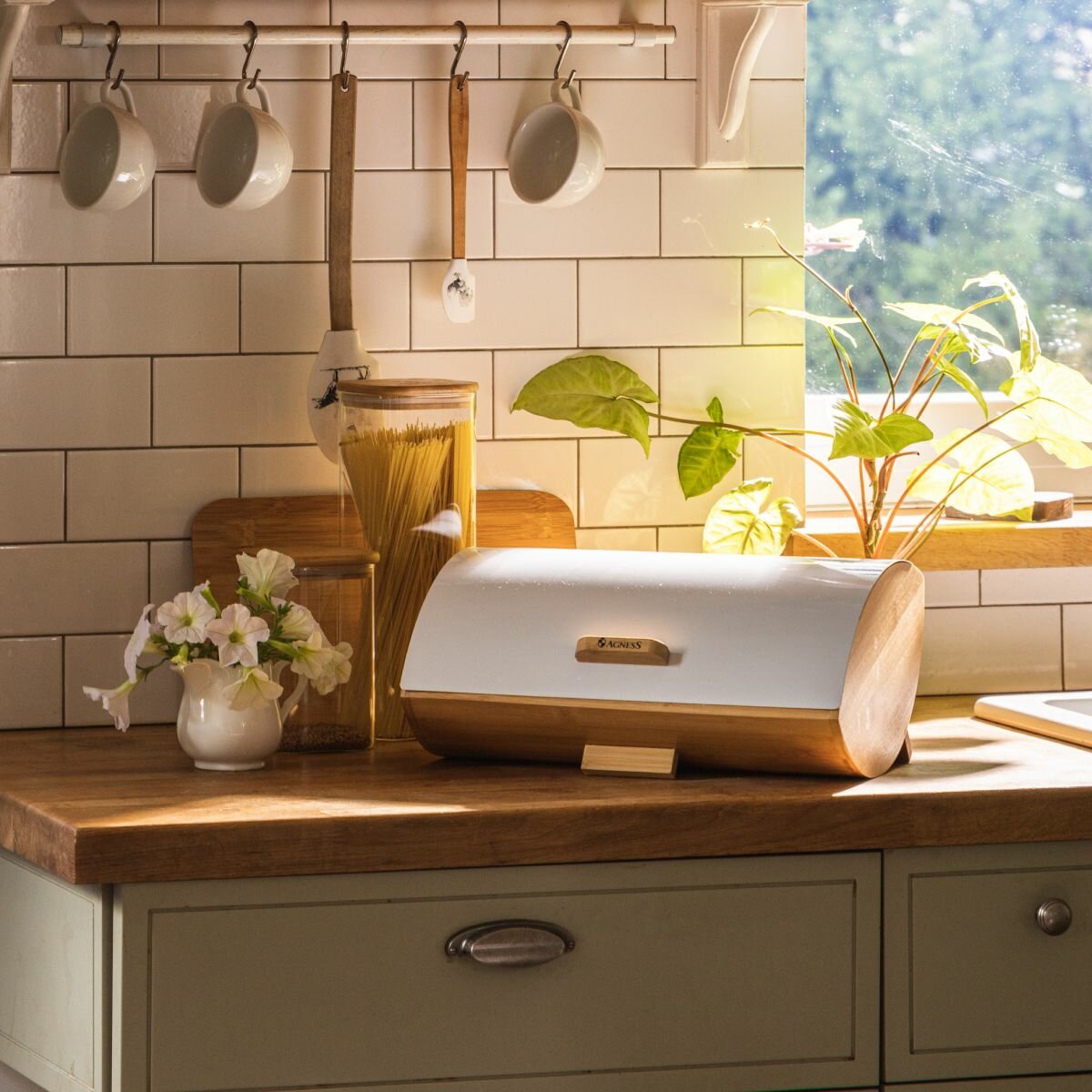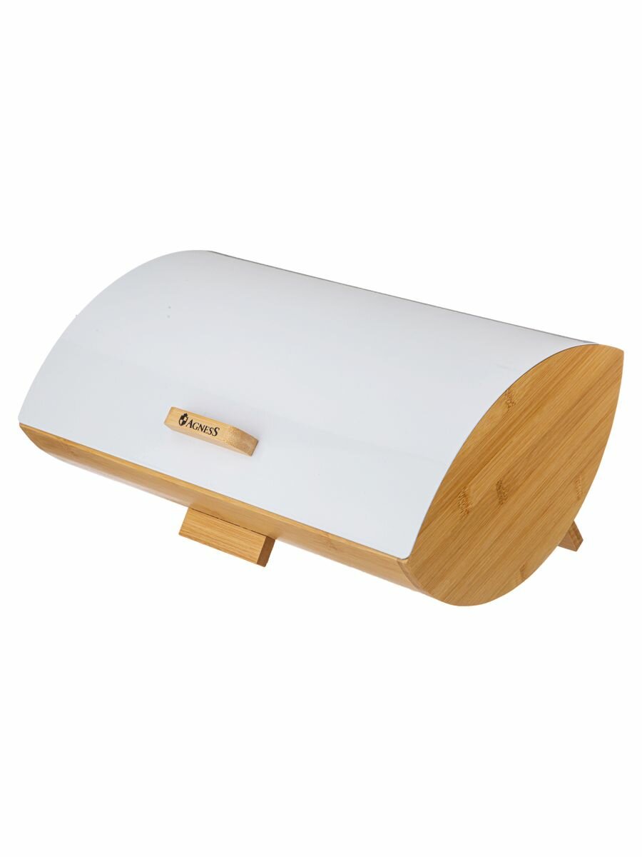 Хлебница Agness White 35х25х15,5см бамбук, крышка сталь окрашенная