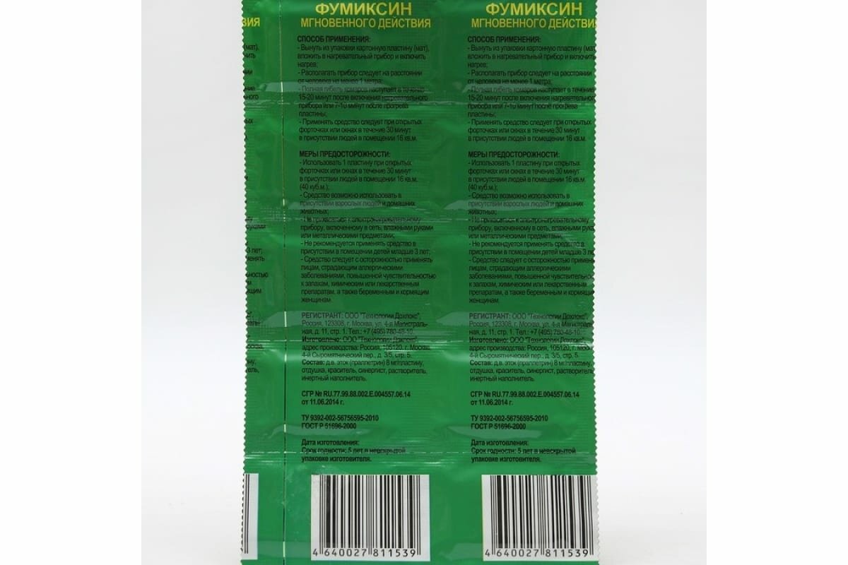 | Тип | пластина для фумигатора |