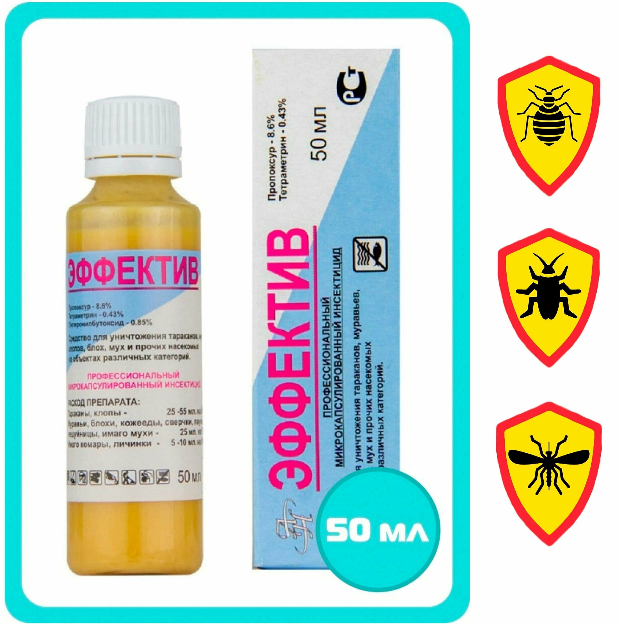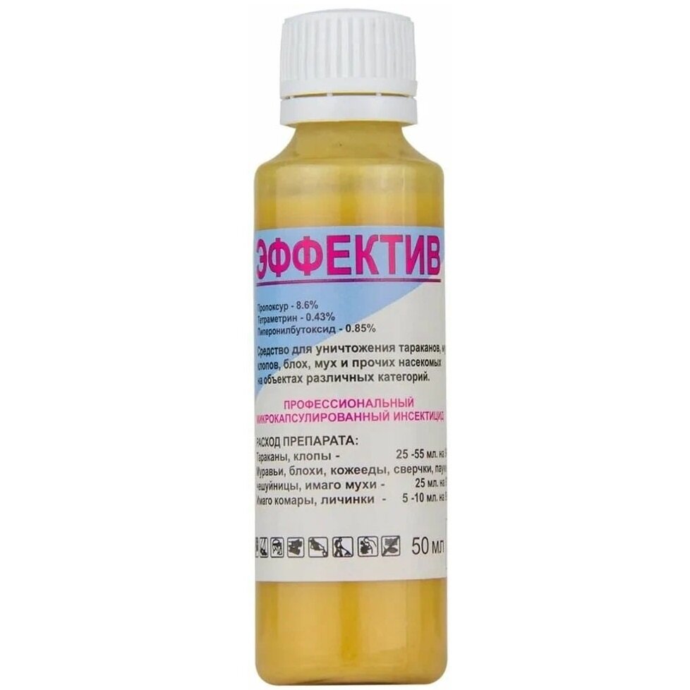 Купить Эффектив (Эфектив) 50 мл. микрокапсулированное средство от насекомых (без запаха) - используется для уничтожения клопов, разных видов тараканов, муравьев, блох, личинок комаров, кожеедов, чешуйниц, а также сверчков и пауков.