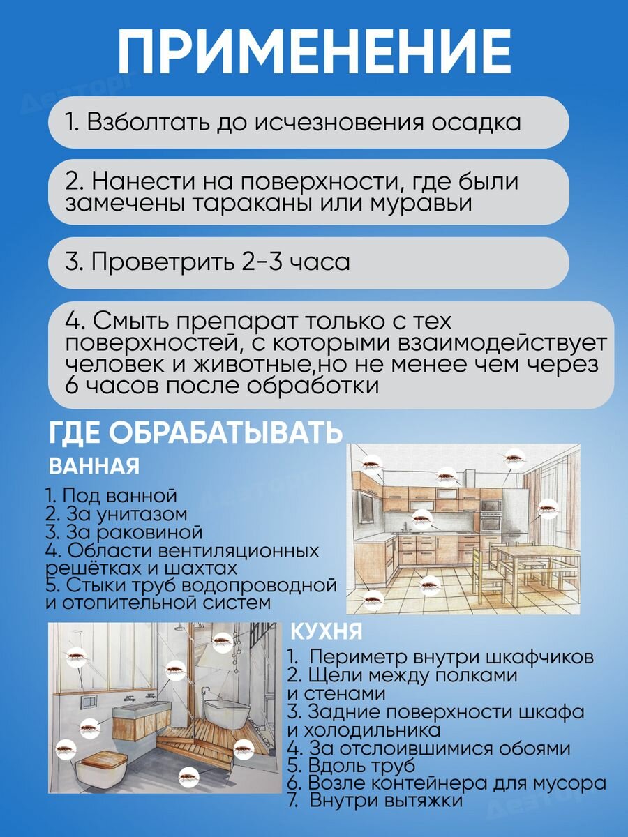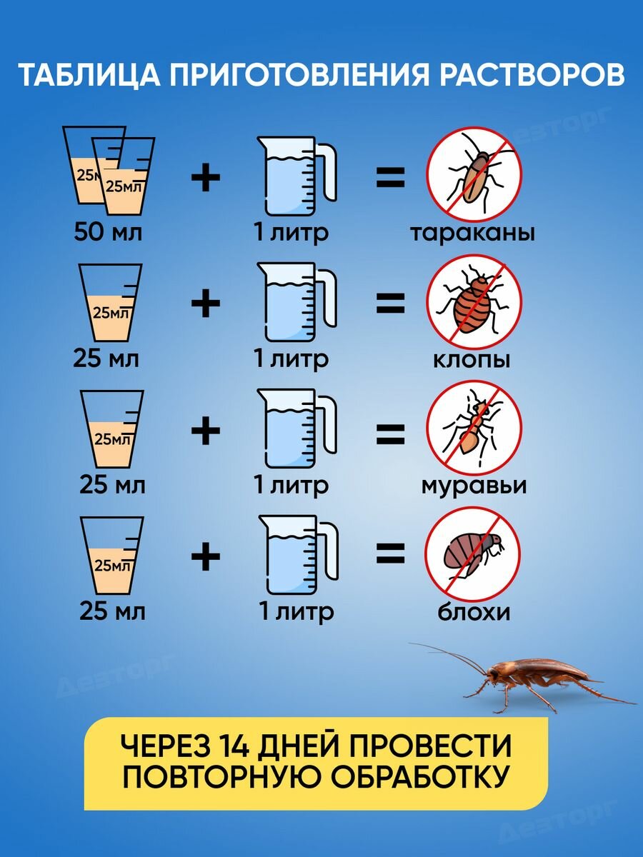 Эффектив средство от клопов, тараканов, блох, муравьев, личинок/имаго мух и комаров. Объём 1 л