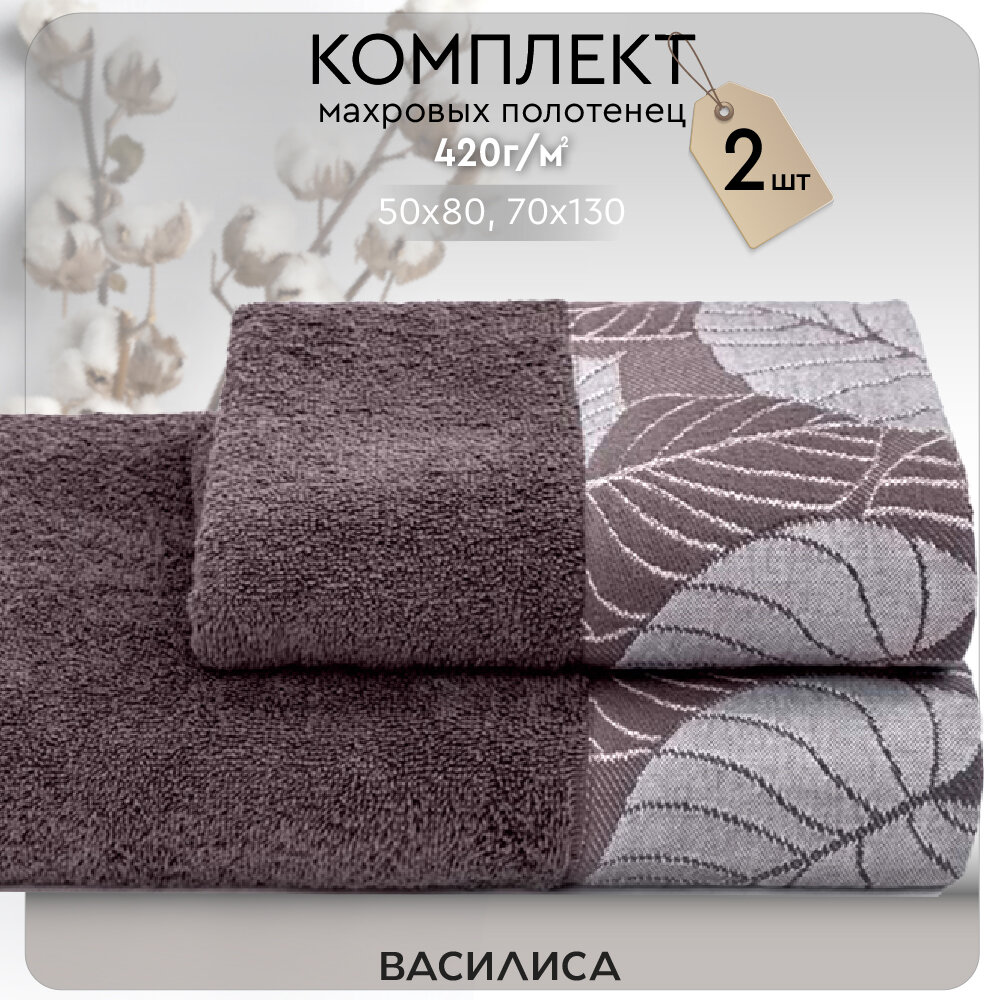 Набор махровых полотенец ECO-Life Flora, 50х80, 70х130, Графит интересное: