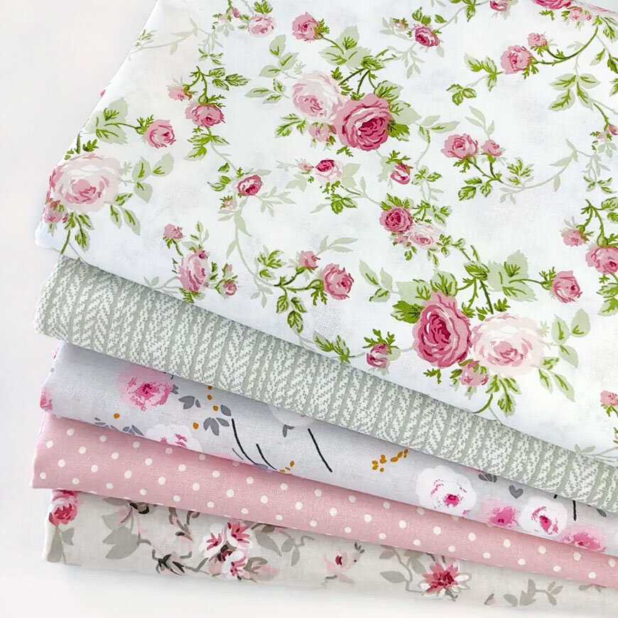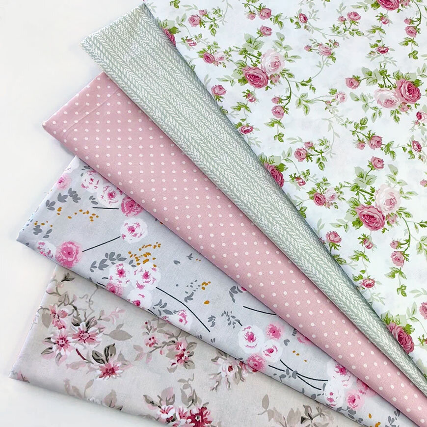 Купить Ткань для шитья, рукоделия, 100% хлопок поплин Турция, набор тканей для пэчворка, серо-розовый, 5 отрезов 50 х 60 см